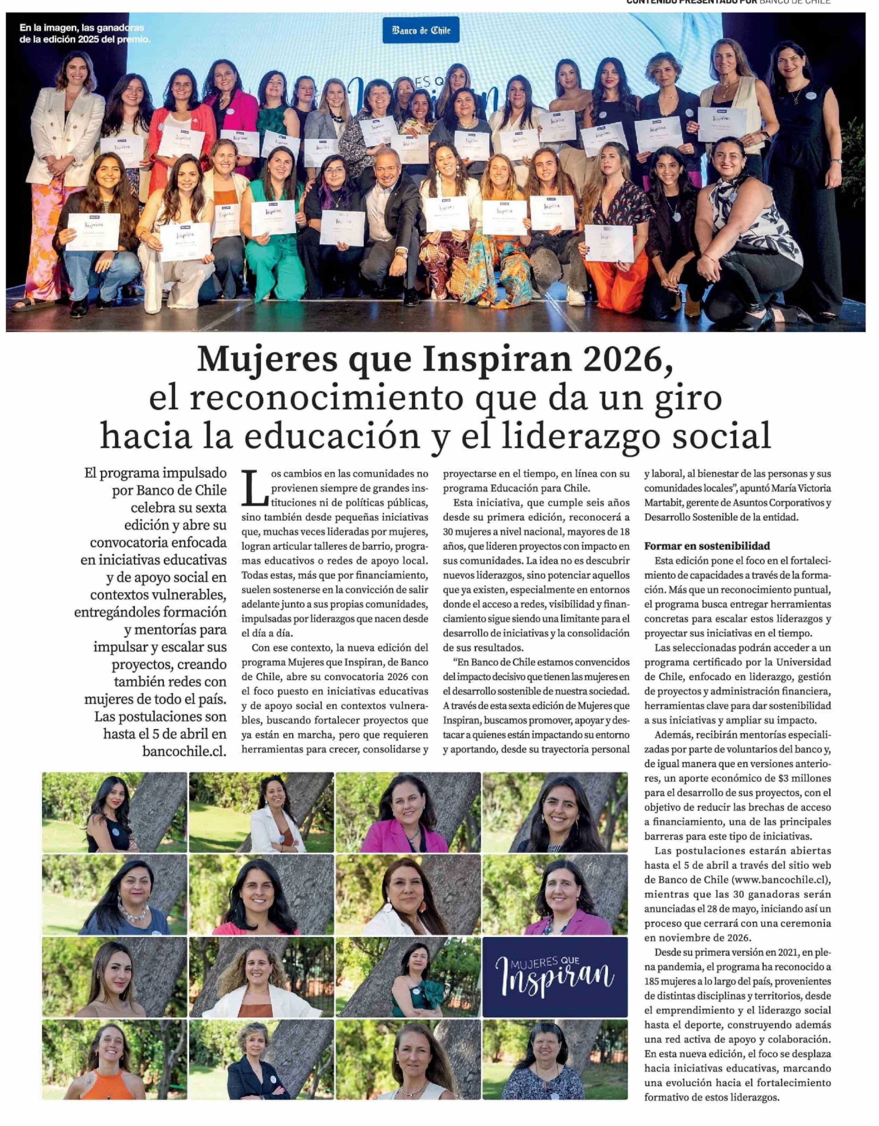 Mujeres que Inspiran 2026, el reconocimiento que da un giro hacia la educación y el liderazgo social