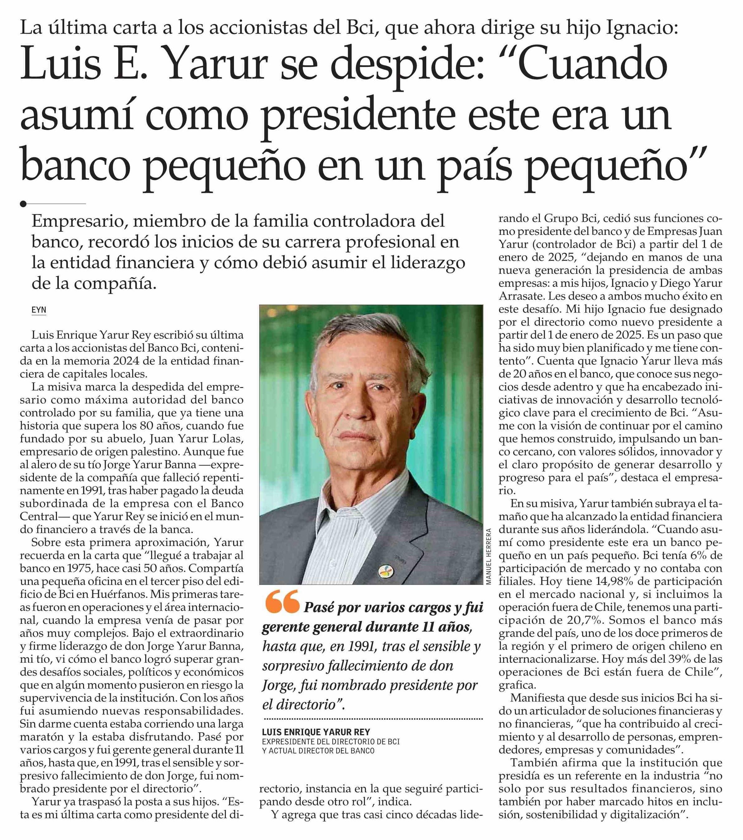Luis E. Yarur se despide: "Cuando asumí como presidente este era un banco pequeño en un país pequeño"