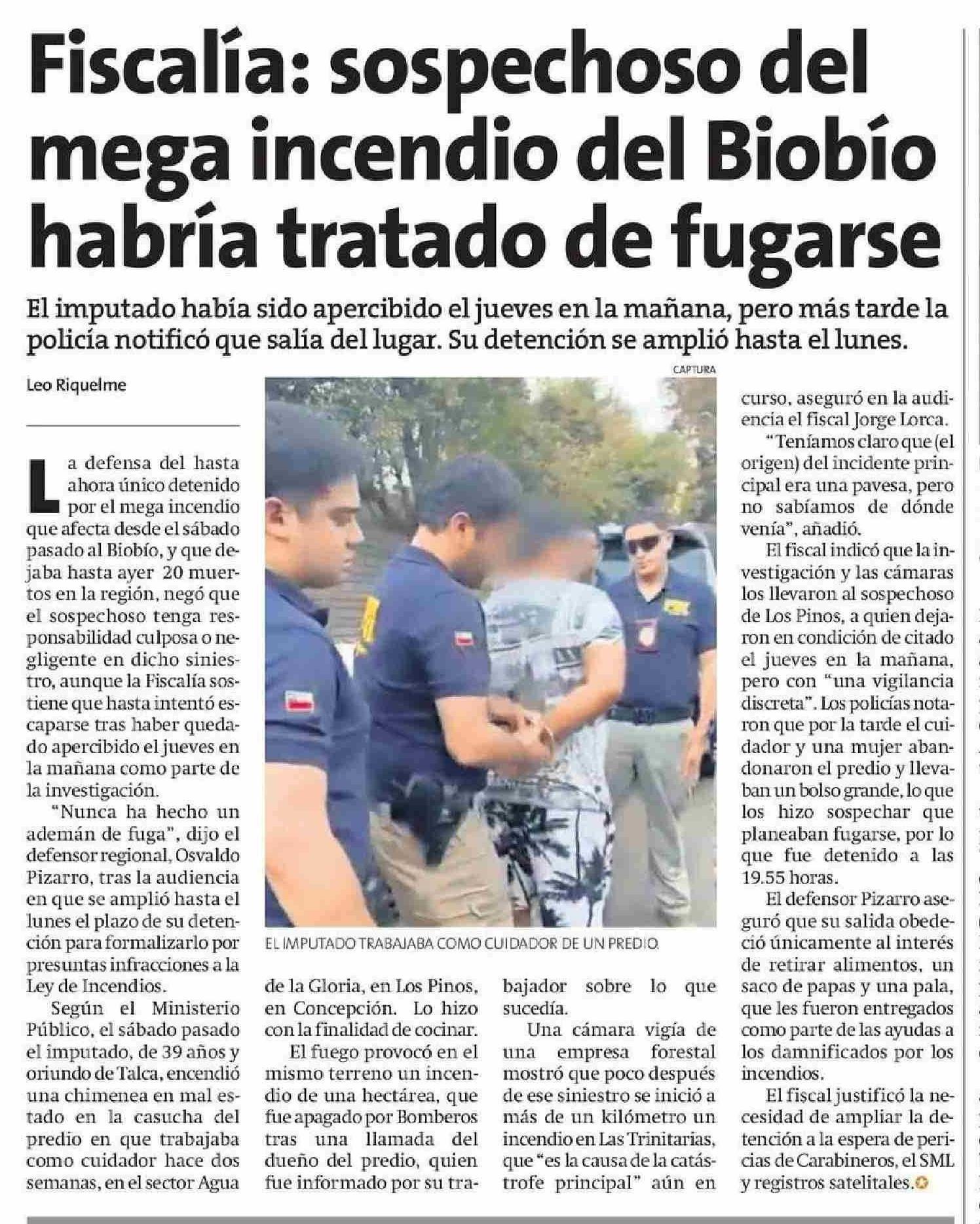 Fiscalía: sospechoso del mega incendio del Biobio habría tratado de fugarse