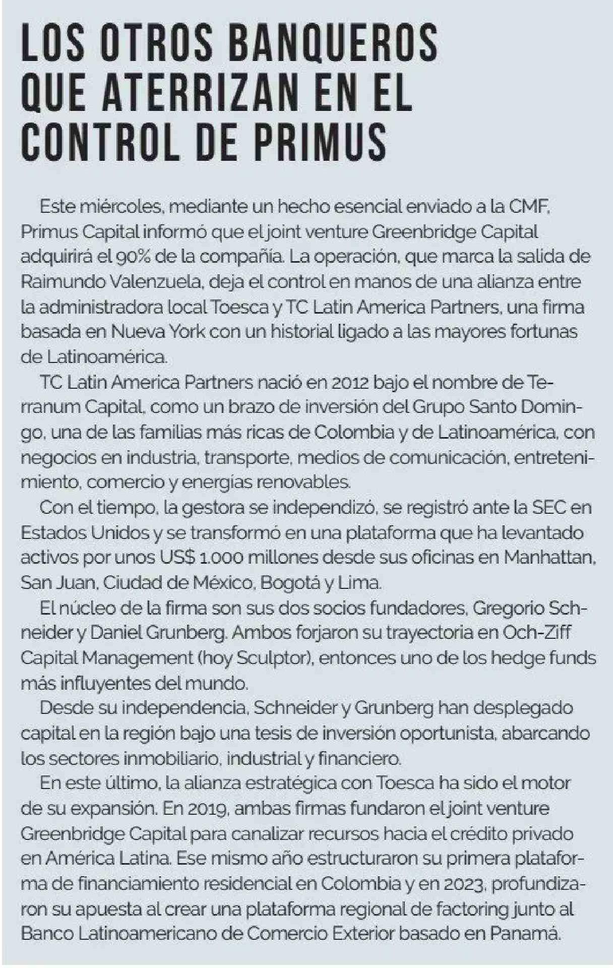 LOS OTROS BANQUEROS QUE ATERRIZAN EN EL CONTROL DE PRIMUS