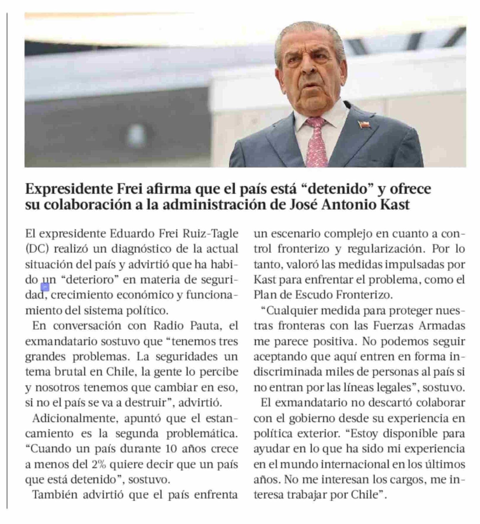Expresidente Frei afirma que el país está “detenido” y ofrece su colaboración a la administración de José Antonio Kast