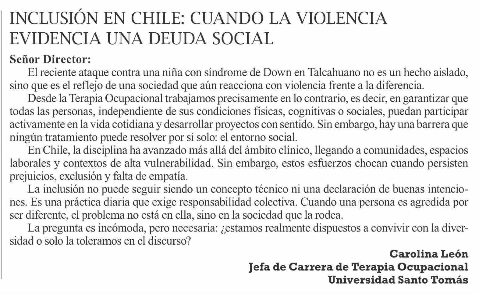 Cartas: IncluSión en chile: cuando la violencia evidencia una deuda Social