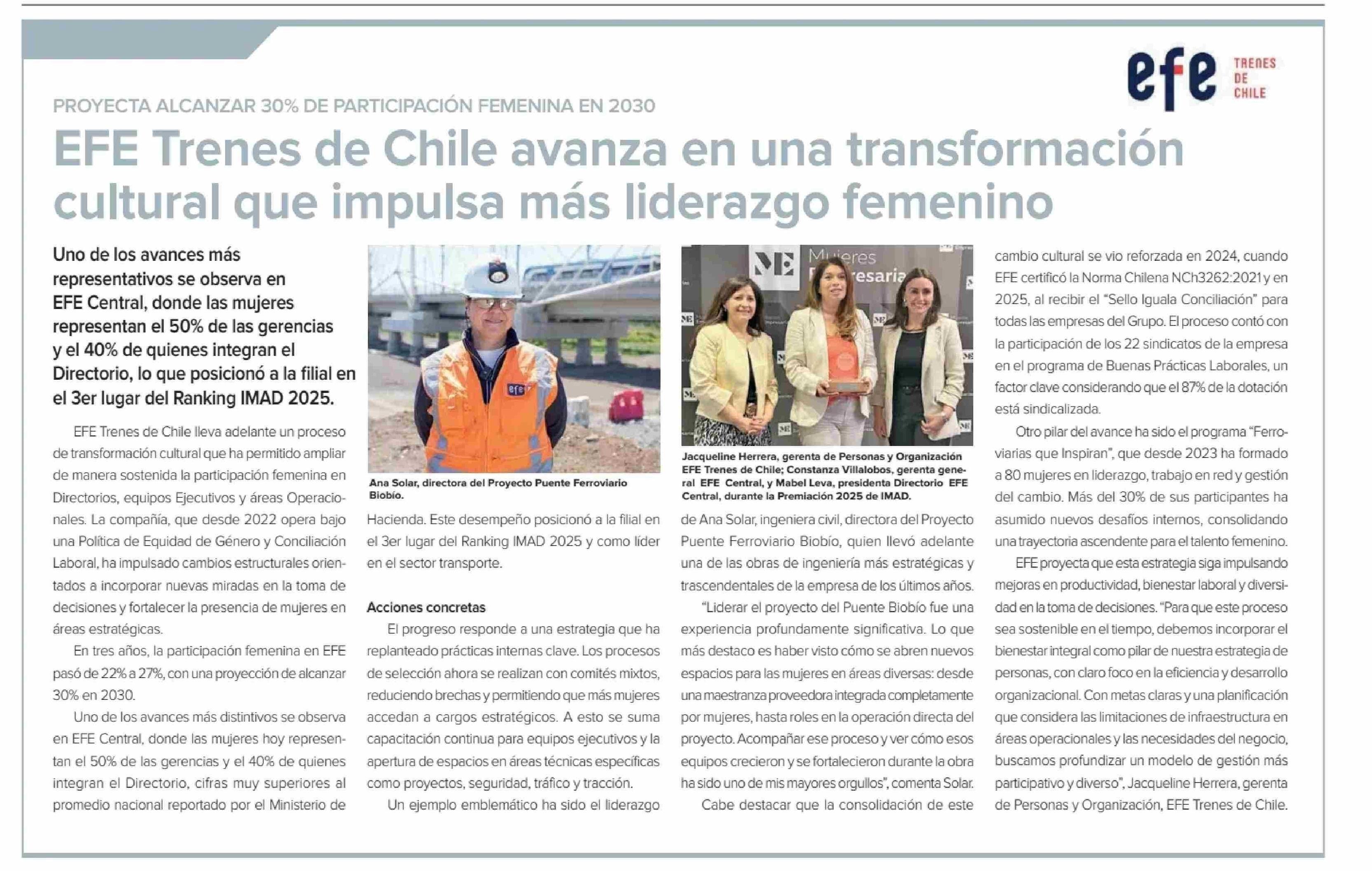 EFE Trenes de Chile avanza en una transformación cultural que impulsa más liderazgo femenino