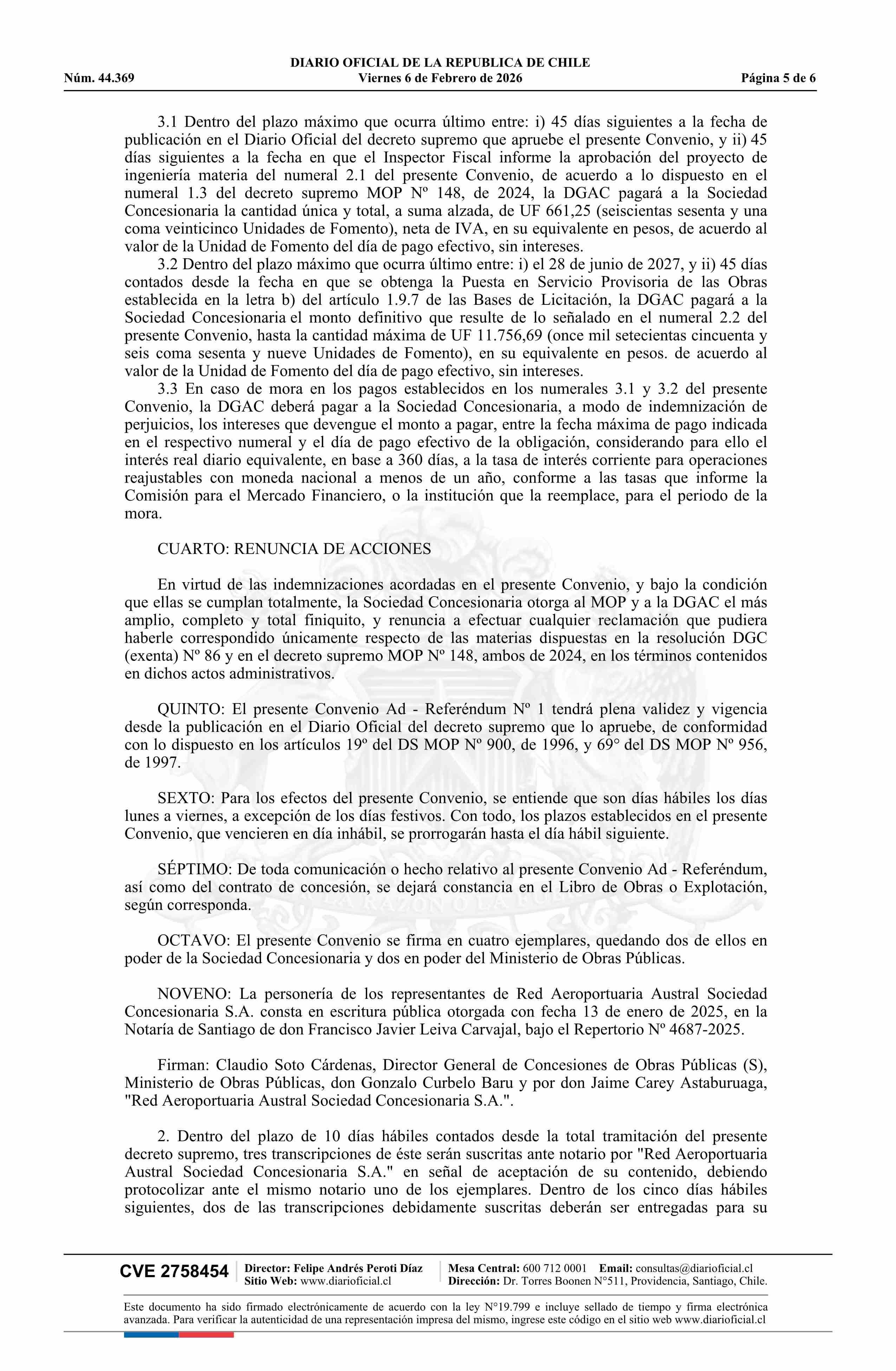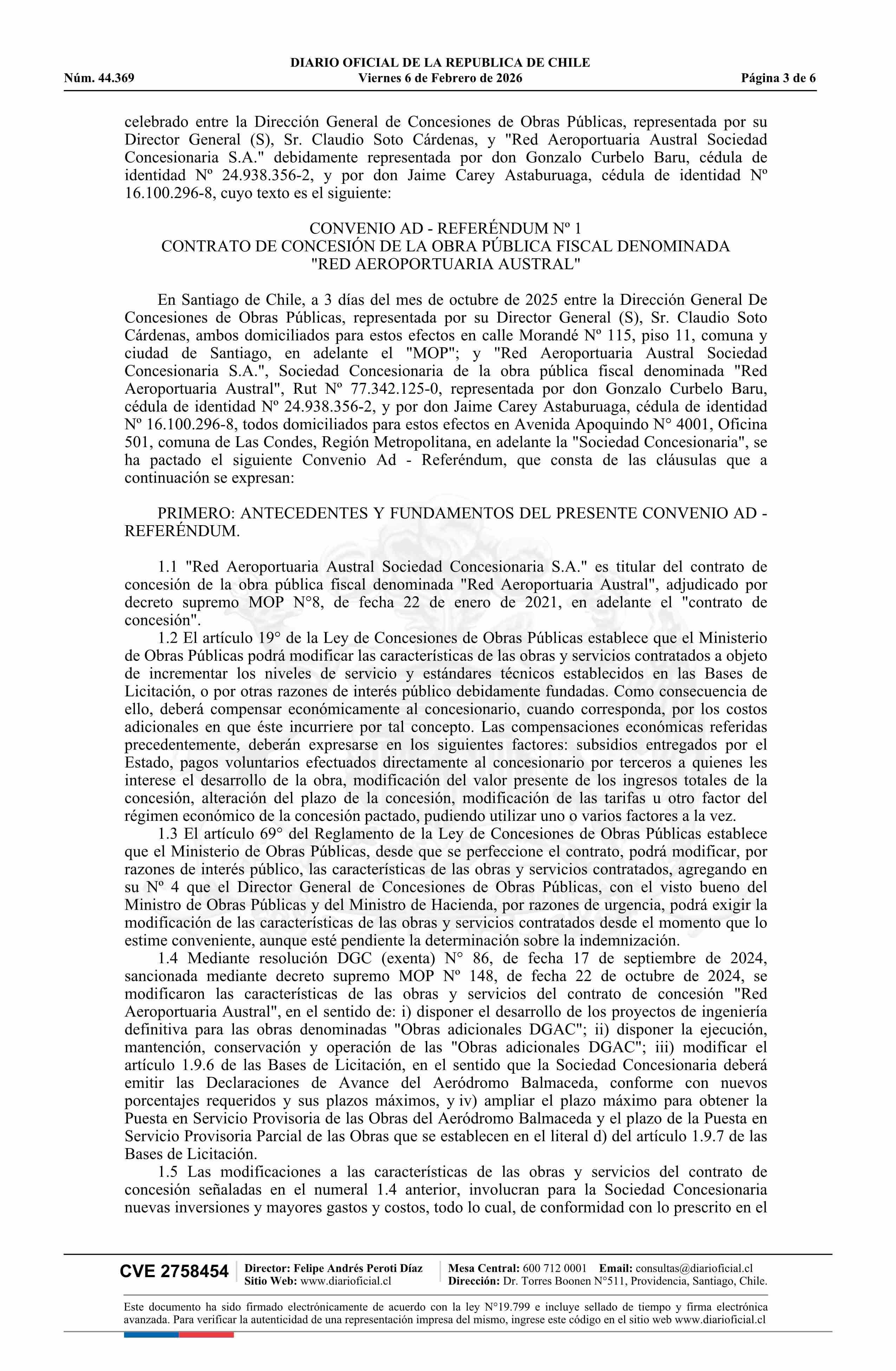 | Título: | Decreto número 130, de 2025.- Aprueba Convenio Ad - Referéndum Nº 1 del contrato de concesión de la obra pública fiscal denominada Red Aeroportuaria Austral |