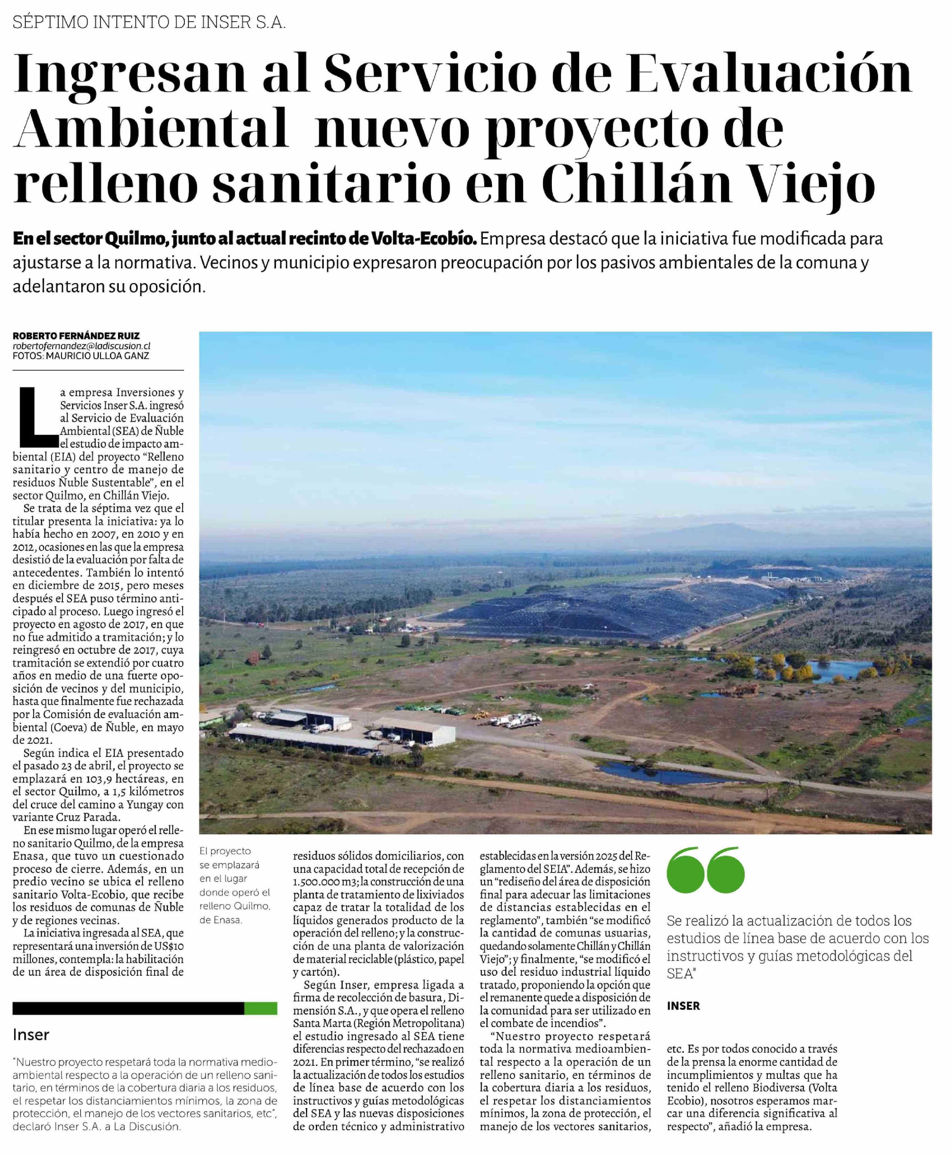 Ingresan al Servicio de Evaluación Ambiental nuevo proyecto de relleno sanitario en Chillán Viejo