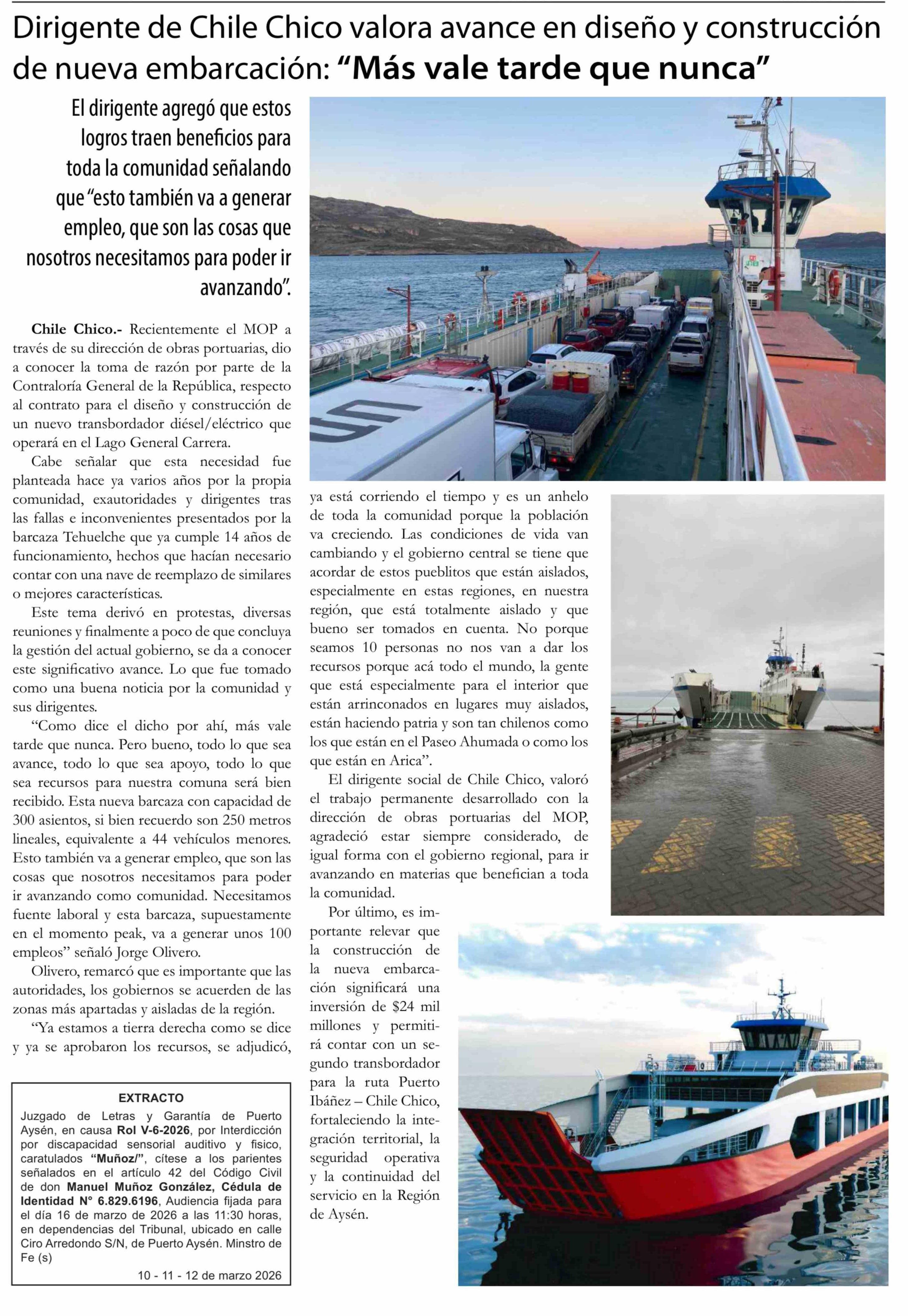 Dirigente de Chile Chico valora avance en diseño y construcción de nueva embarcación: "Más vale tarde que nunca"