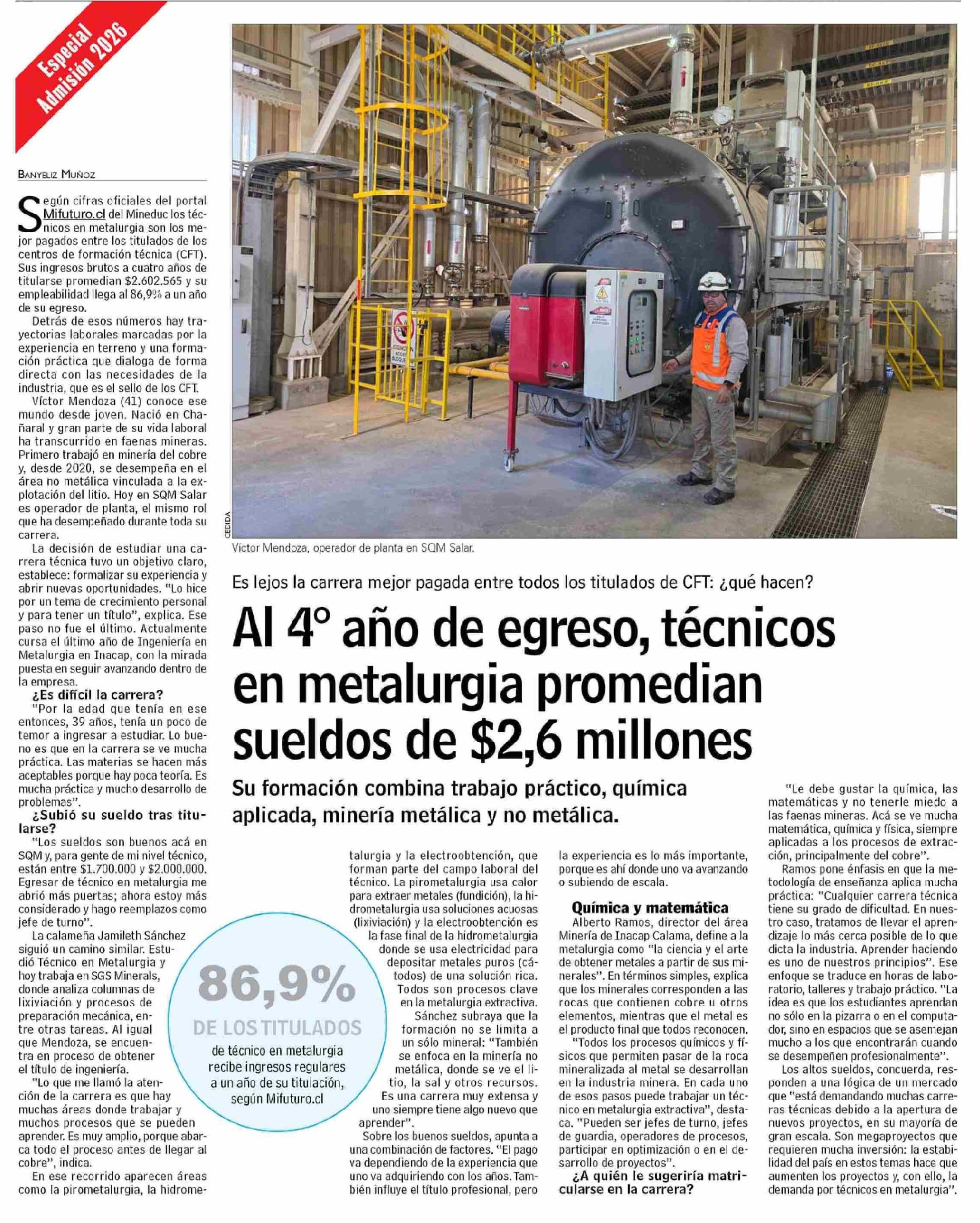 Título: Al 4º año de egreso, técnicos en metalurgia promedian sueldos de $2,6 millones