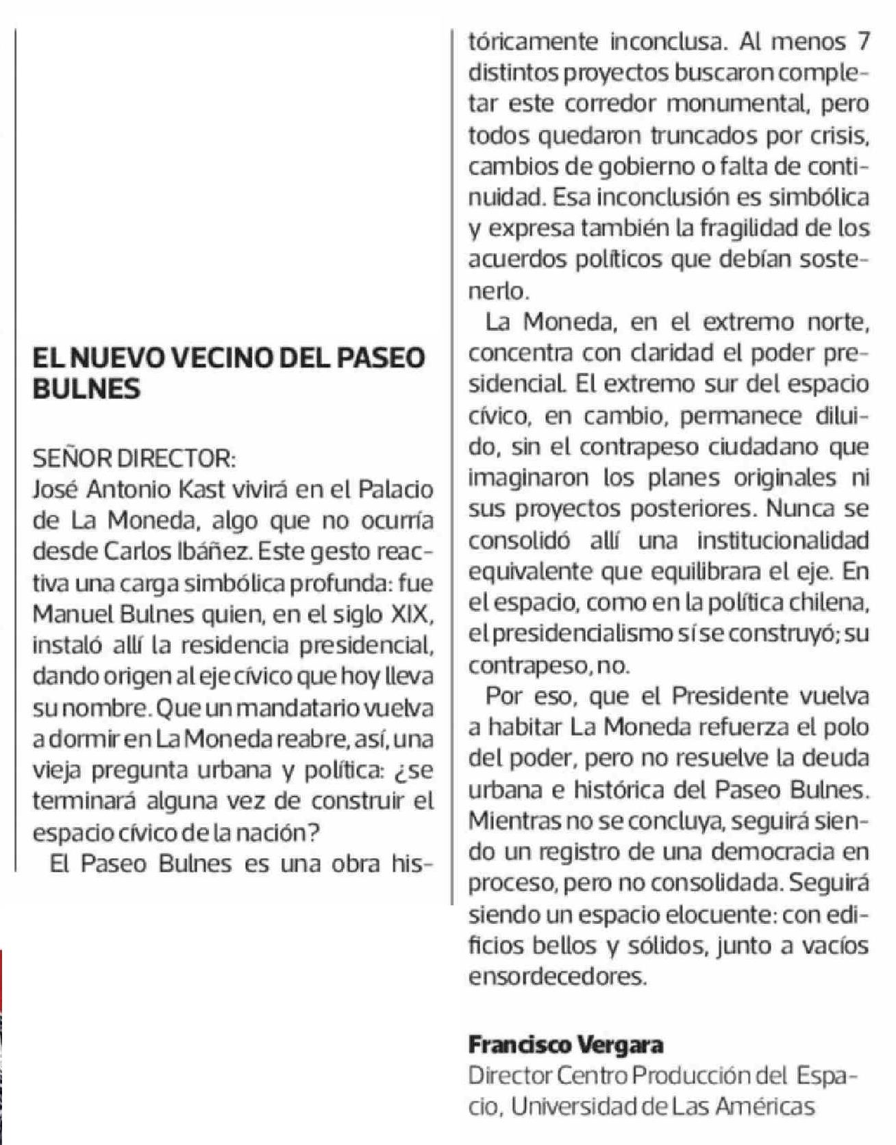 Cartas: EL NUEVO VECINO DEL PASEO BULNES