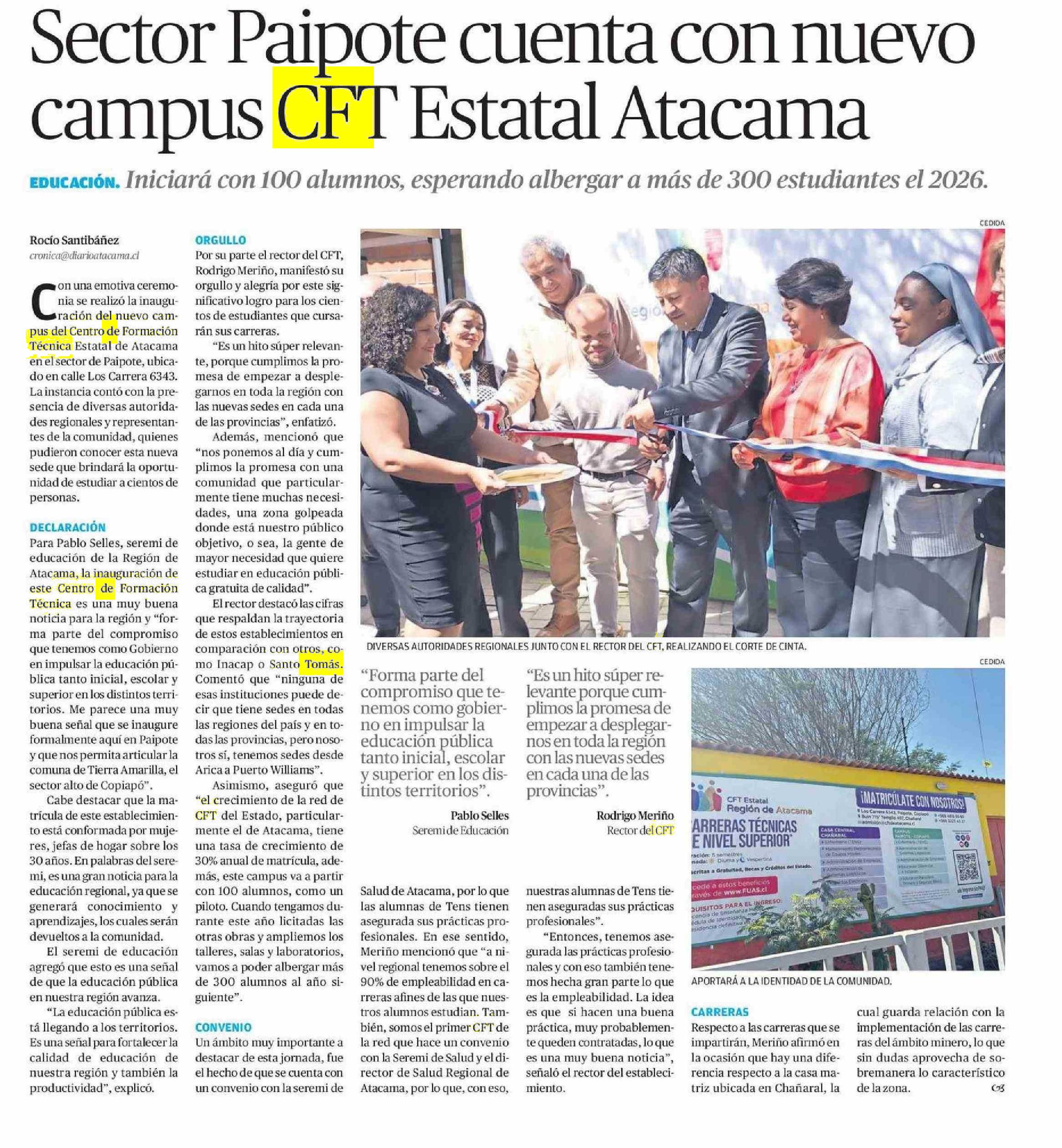 Sector Paipote cuenta con nuevo campus CFT Estatal Atacama