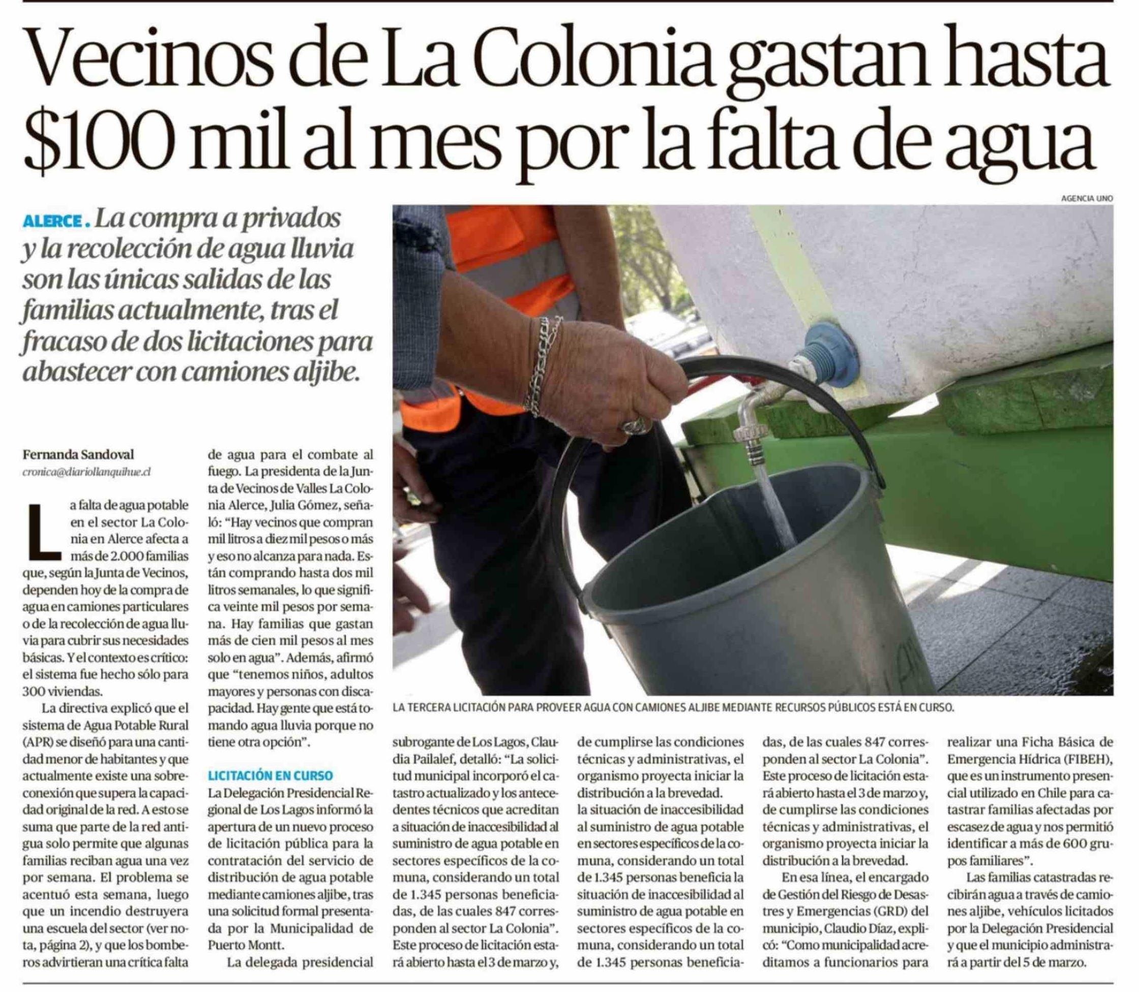 Vecinos de La Colonia gastan hasta $100 mil al mes por la falta de agua