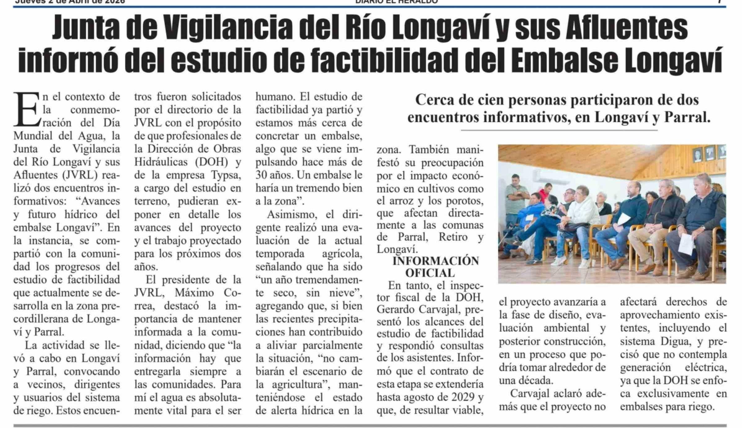 Junta de Vigilancia del Río Longaví y sus Afluentes informó del estudio de factibilidad del Embalse Longaví