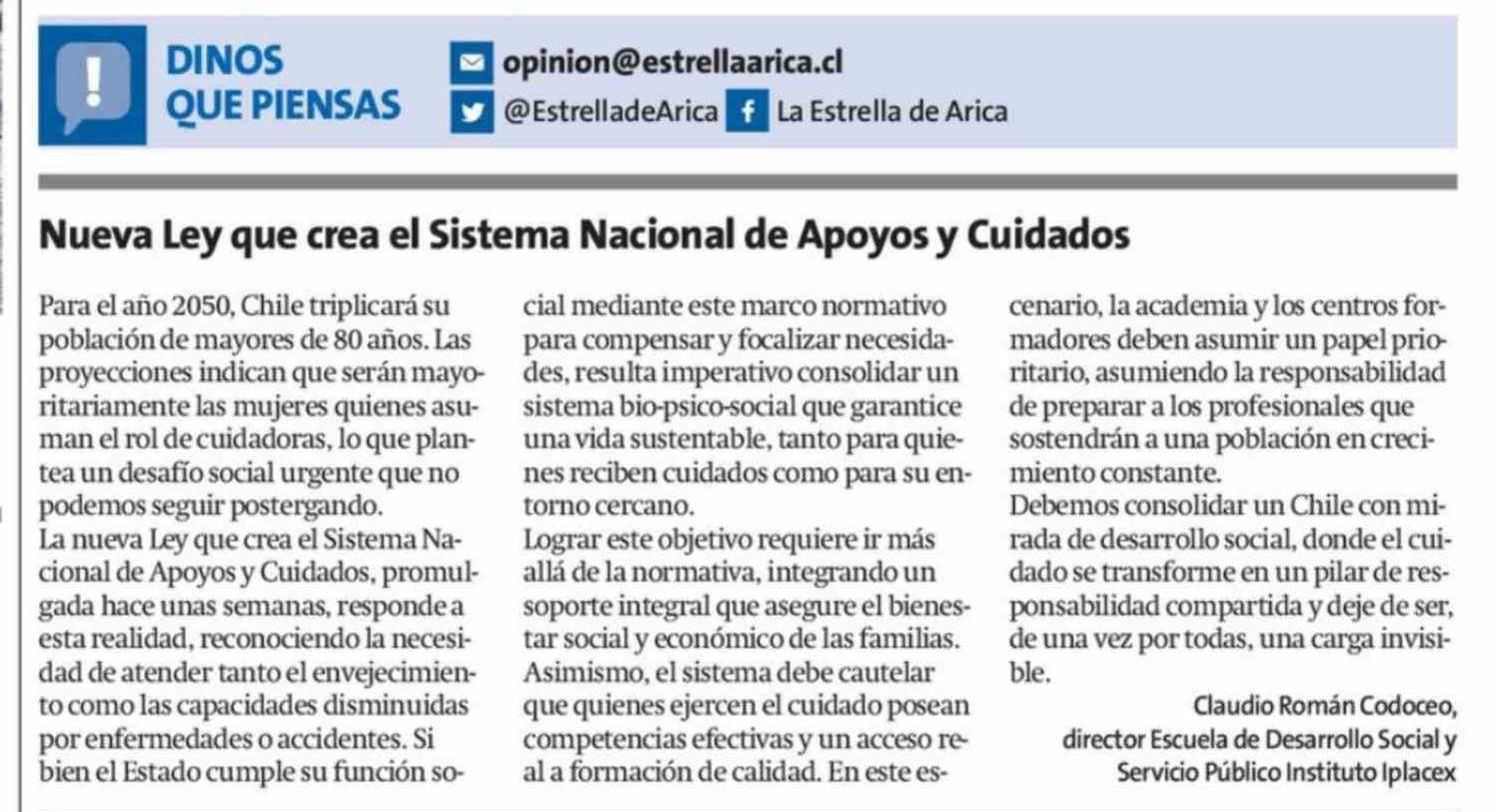 Columnas de Opinión: Nueva Ley que crea el Sistema Nacional de Apoyos y Cuidados