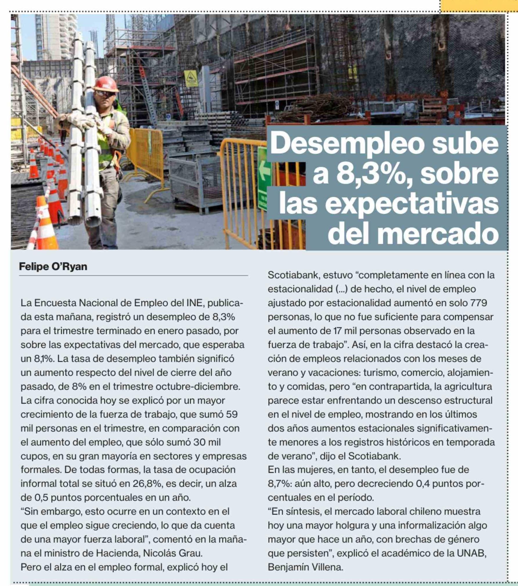 Desempleo sube a 8,3%, sobre las expectativas del mercado