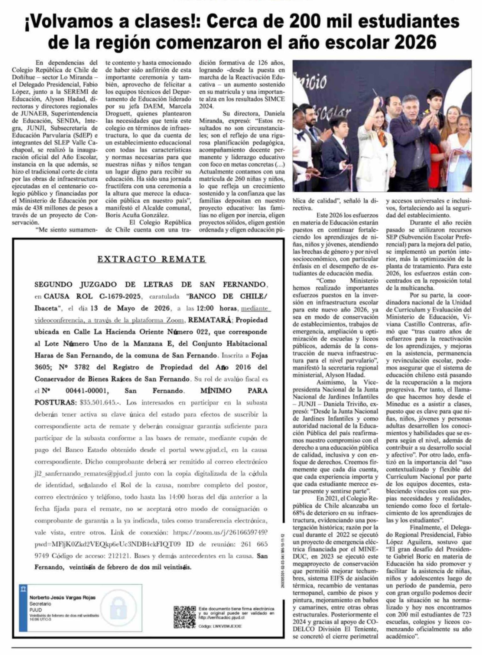 ¡Volvamos a clases !: Cerca de 200 mil estudiantes de la región comenzaron el año escolar 2026