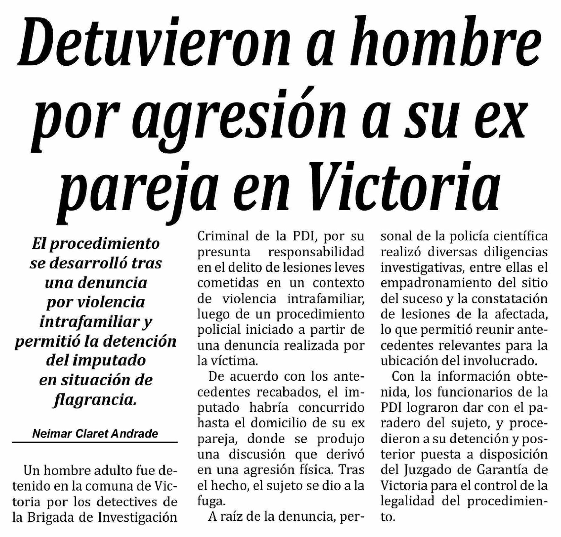 Detuvieron a hombre por agresión a su ex pareja en Victoria