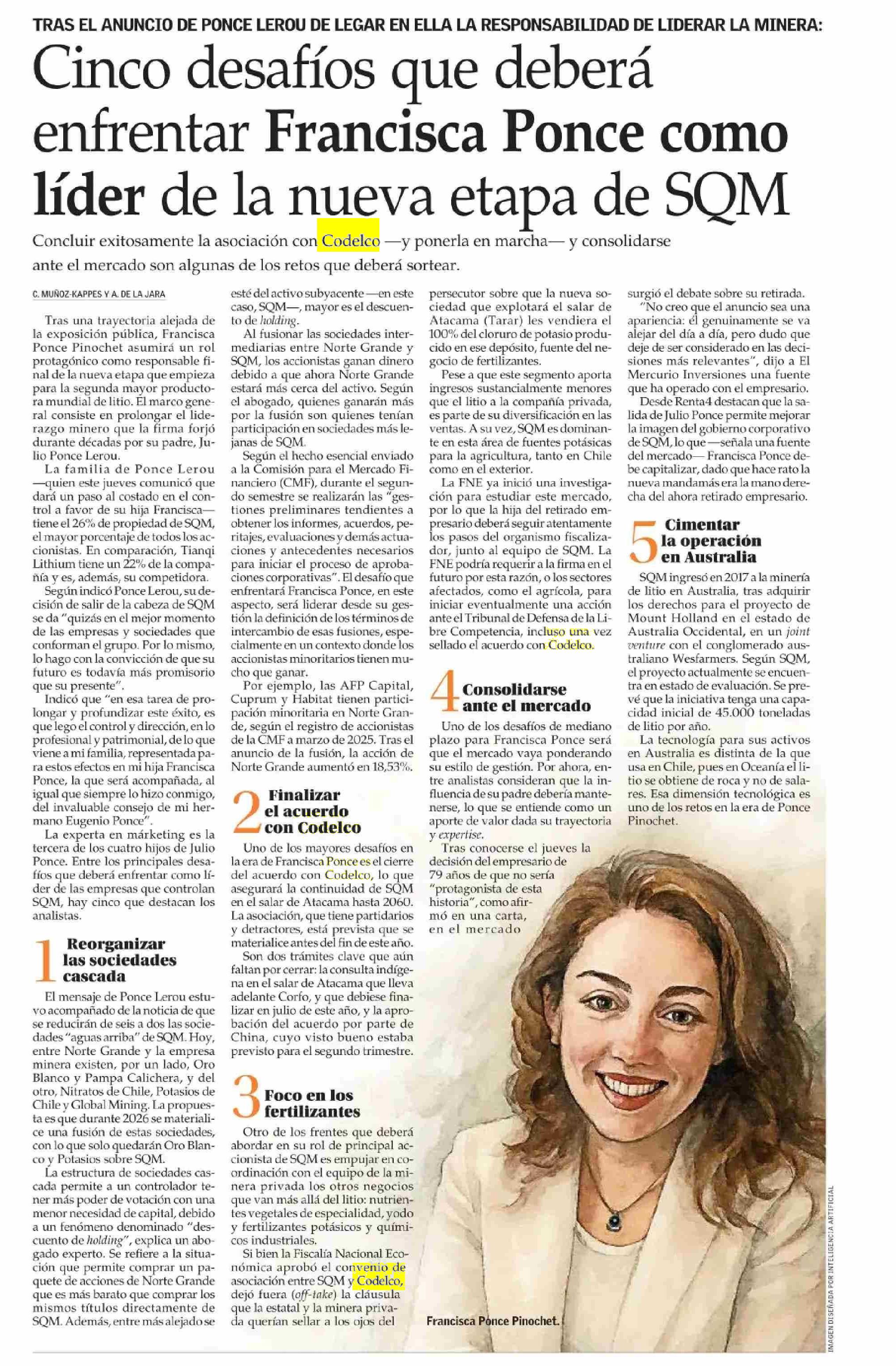 Cinco desafíos que deberá enfrentar Francisca Ponce como líder de la nueva etapa de SQM
