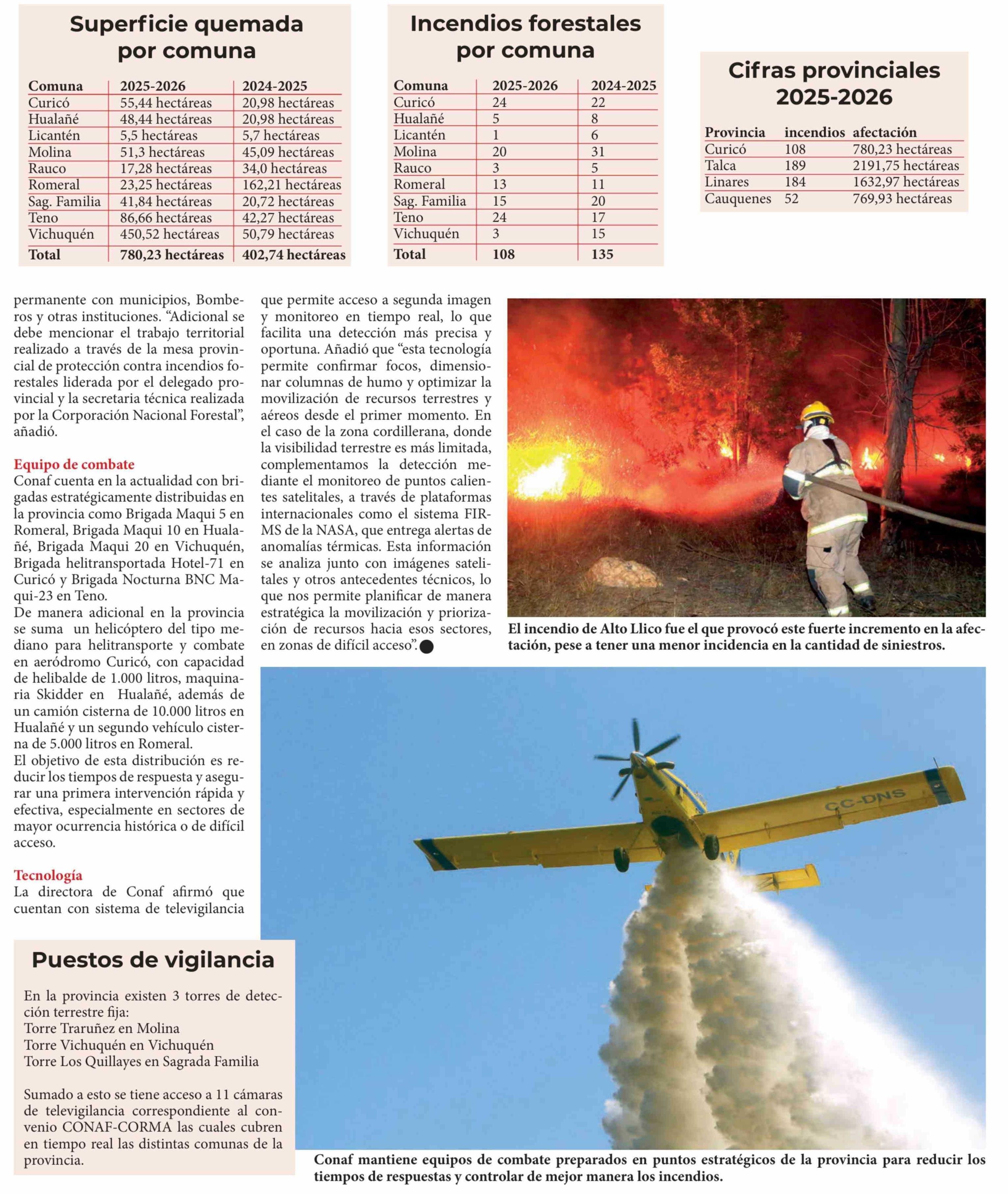Curicó aumenta al doble la superficie quemada por incendios forestales