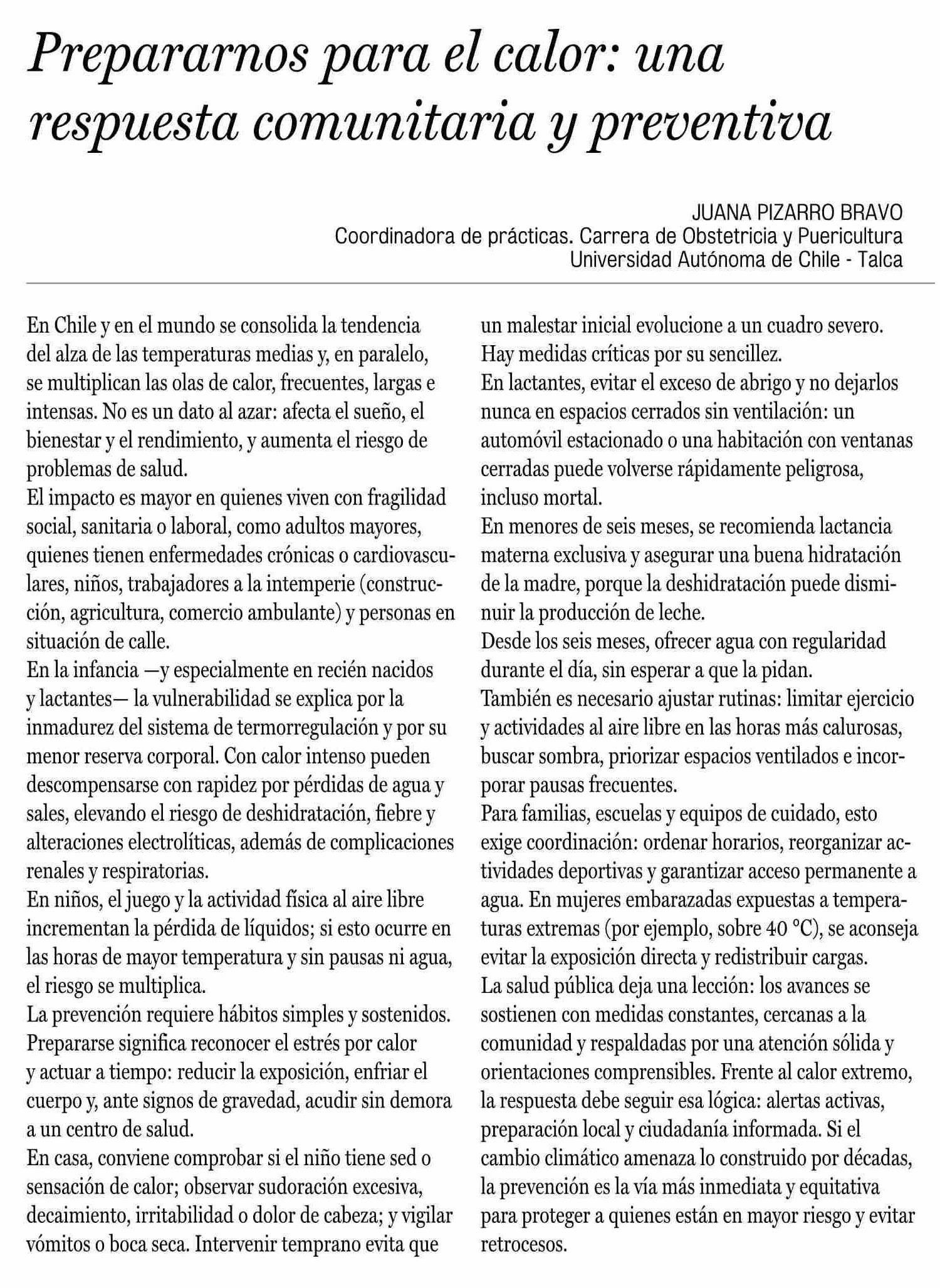 Cartas: Prepararnos para el calor: una respuesta comunitaria y preventiva
