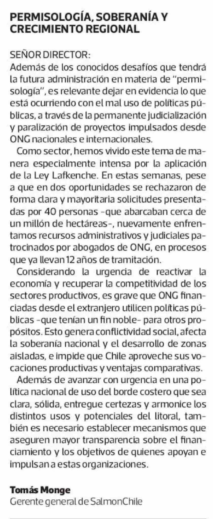 Cartas: PERMISOLOGÍA, SOBERANÍA Y CRECIMIENTO REGIONAL
