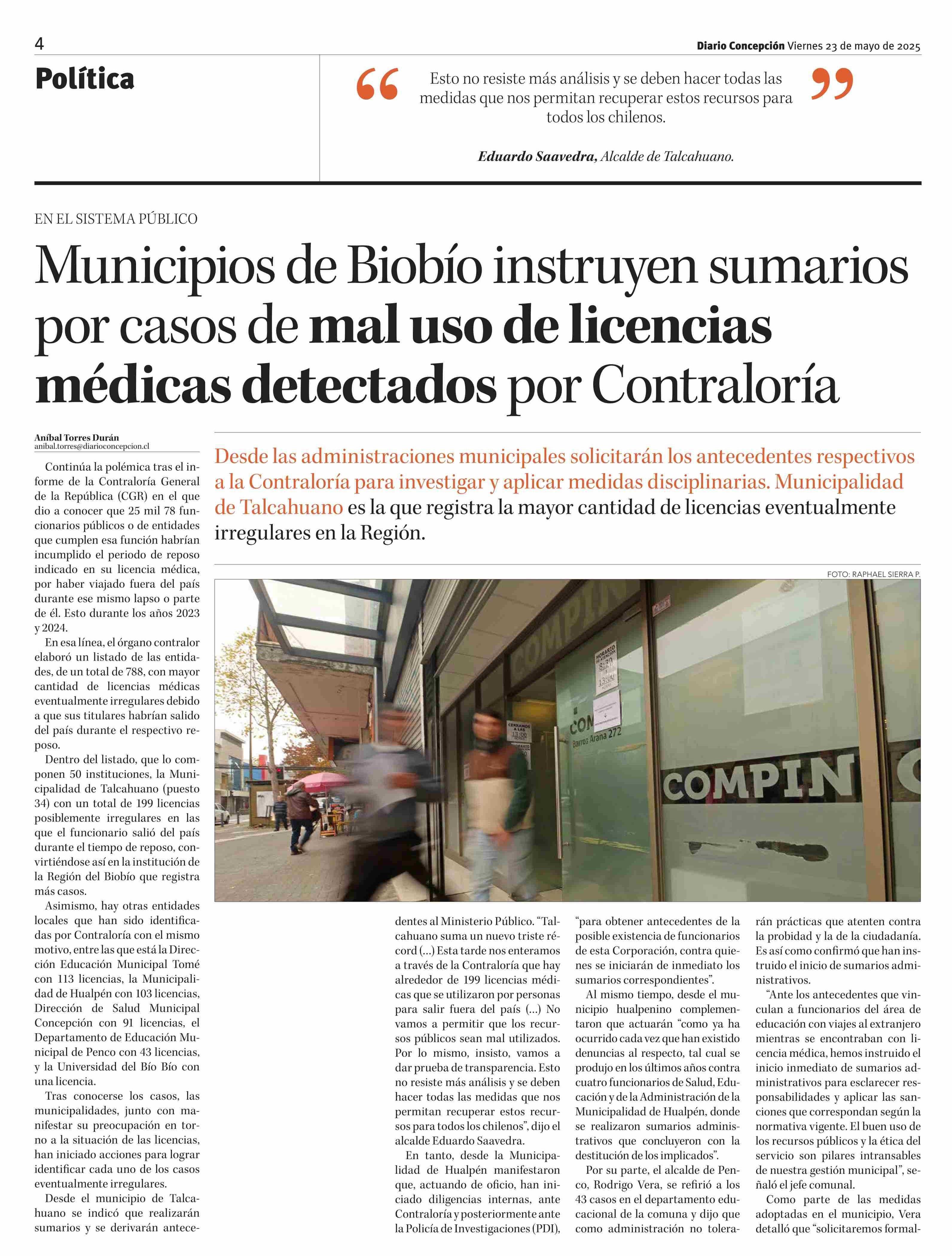 Municipios de Biobío instruyen sumarios por casos de mal uso de licencias médicas detectados por Contraloría