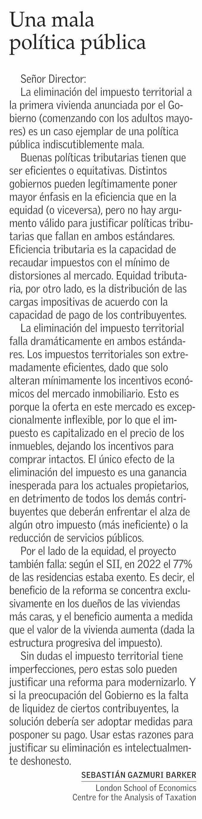 Cartas: Una mala política pública