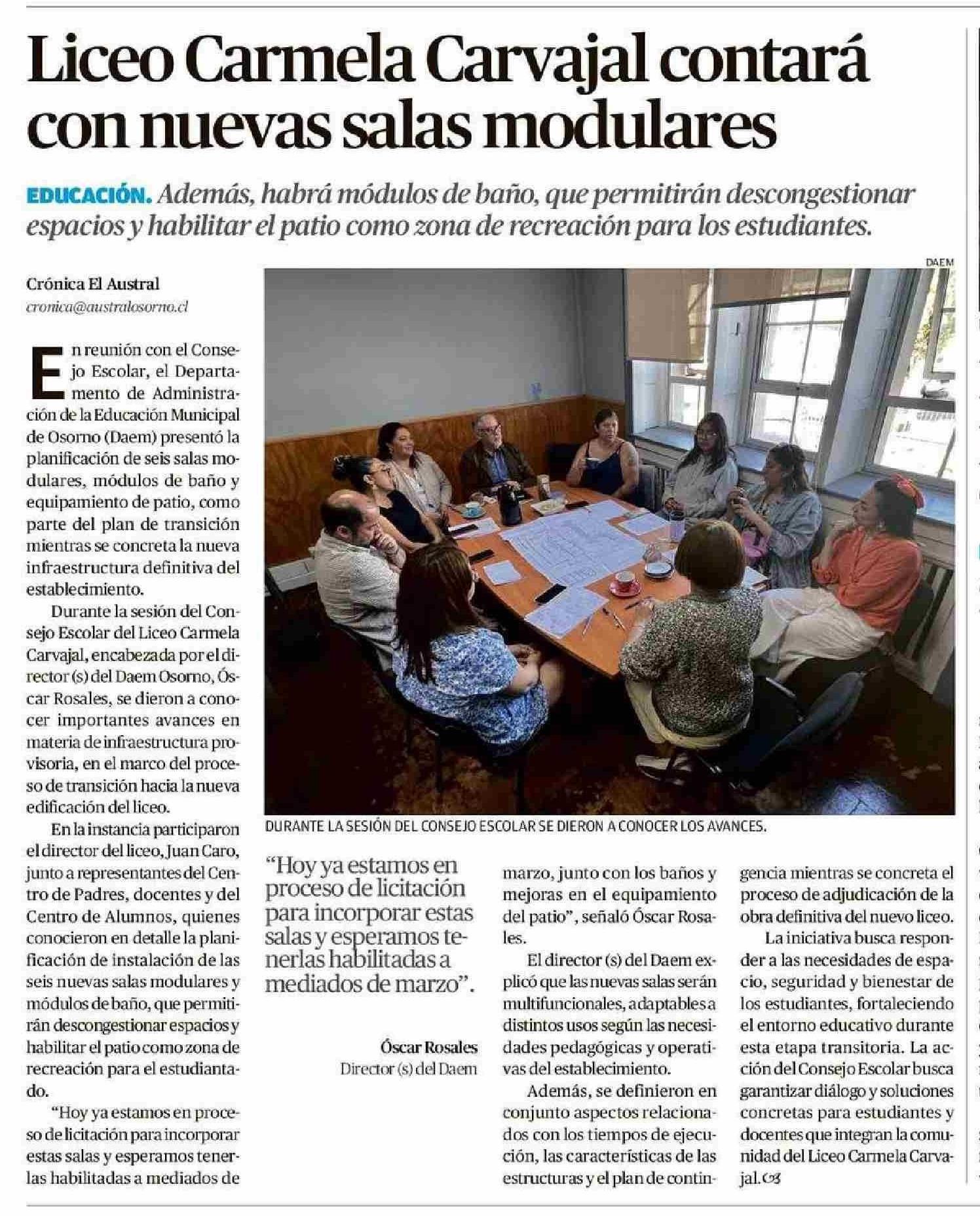 Liceo Carmela Carvajal contará con nuevas salas modulares