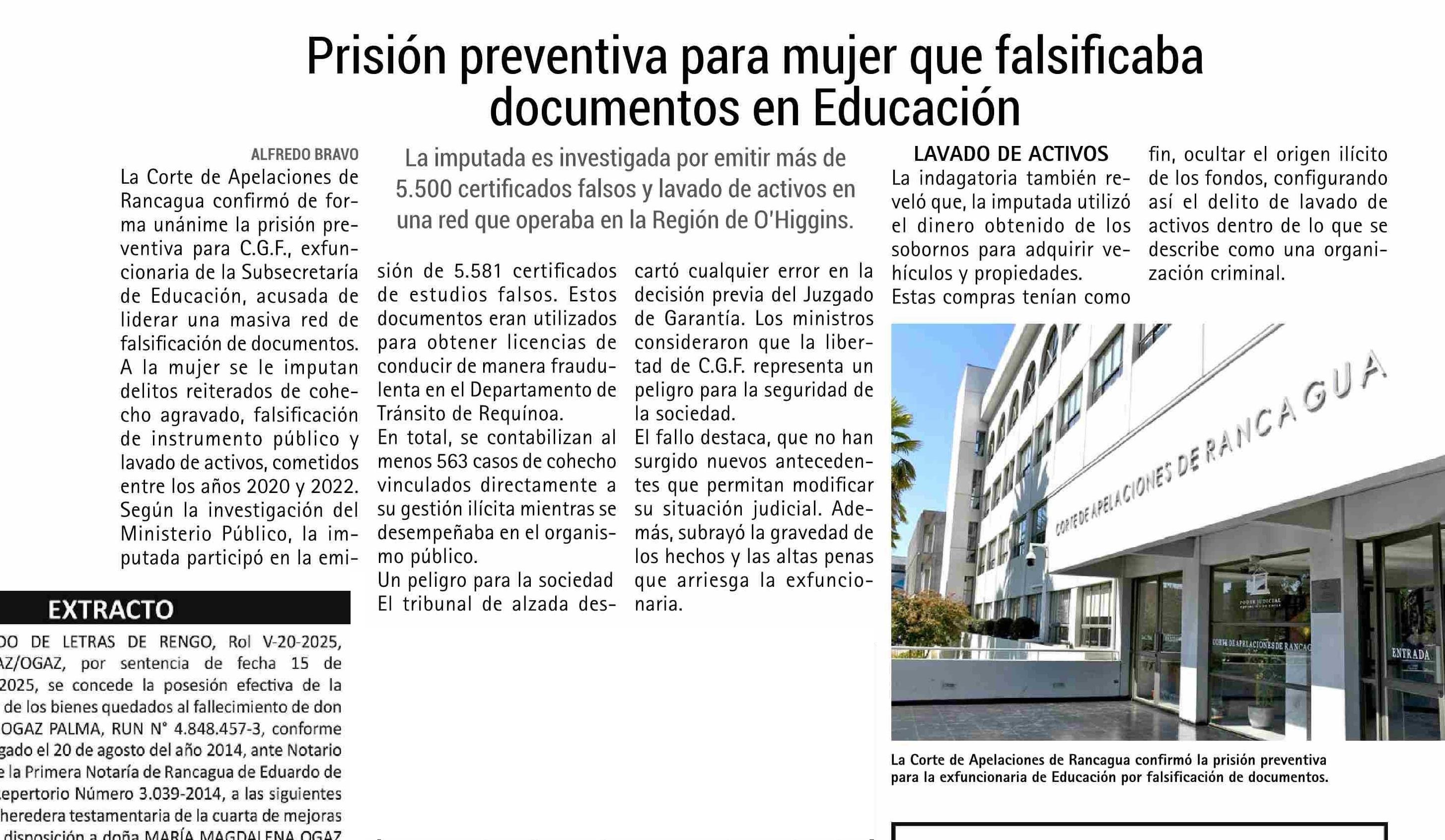 Prisión preventiva para mujer que falsificaba documentos en Educación
