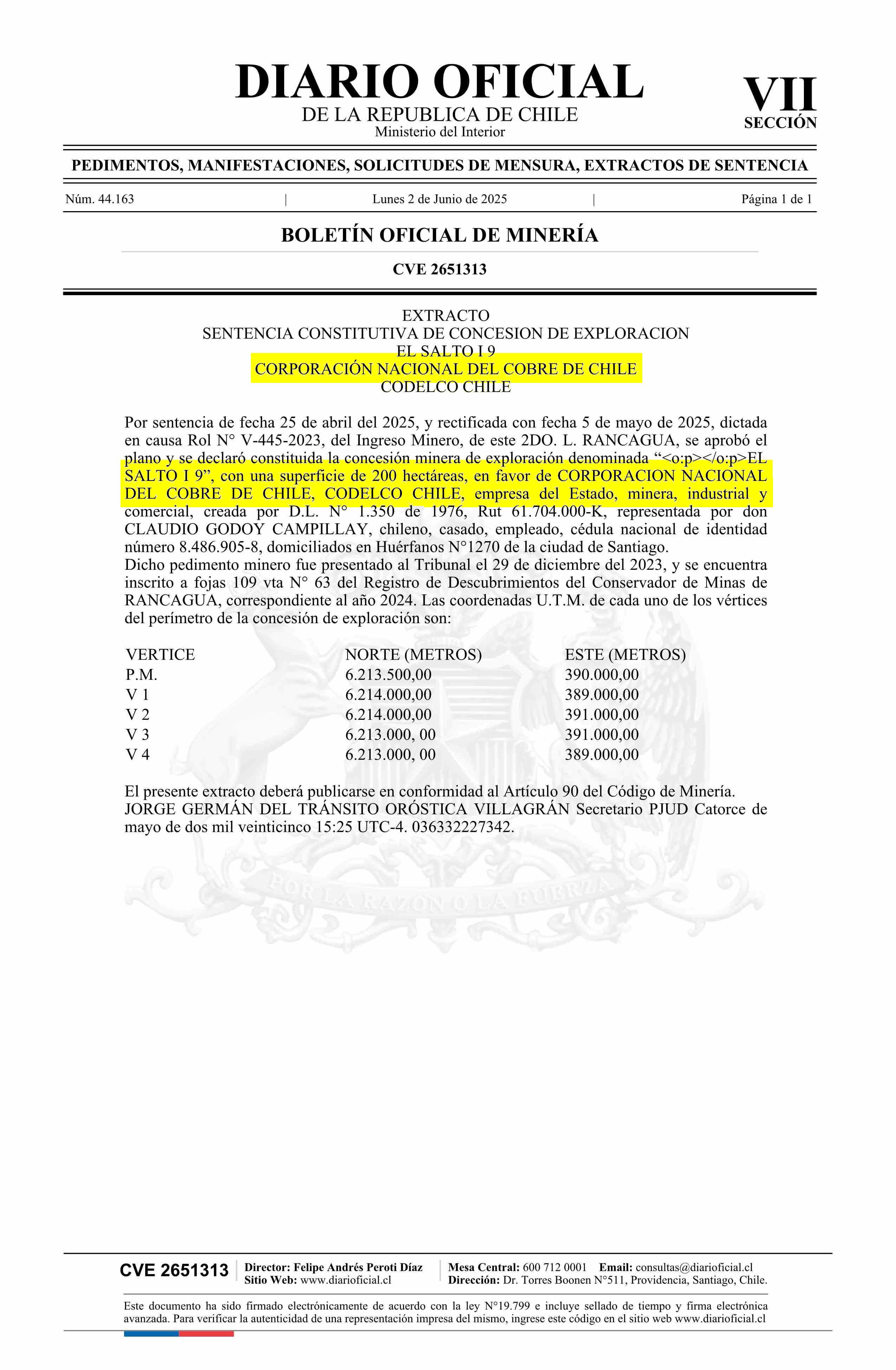 DIARIO OFICIAL CHILE - BOLETÍN OFICIAL DE MINERÍA (DIARIO OFICIAL CHILE – BOM – SENTENCIAS EXPLORA)