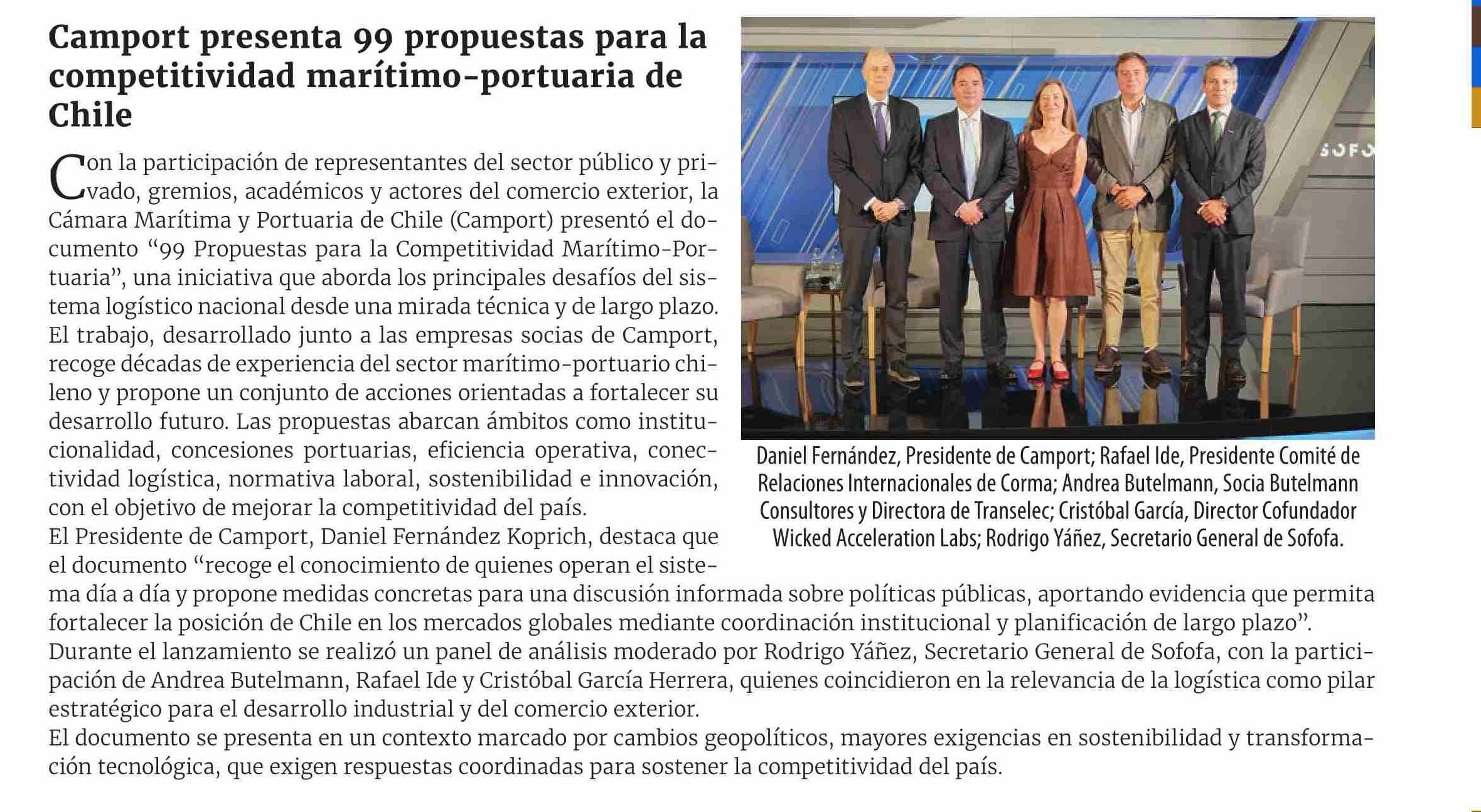 Camport presenta 99 propuestas para la competitividad marítimo-portuaria de Chile
