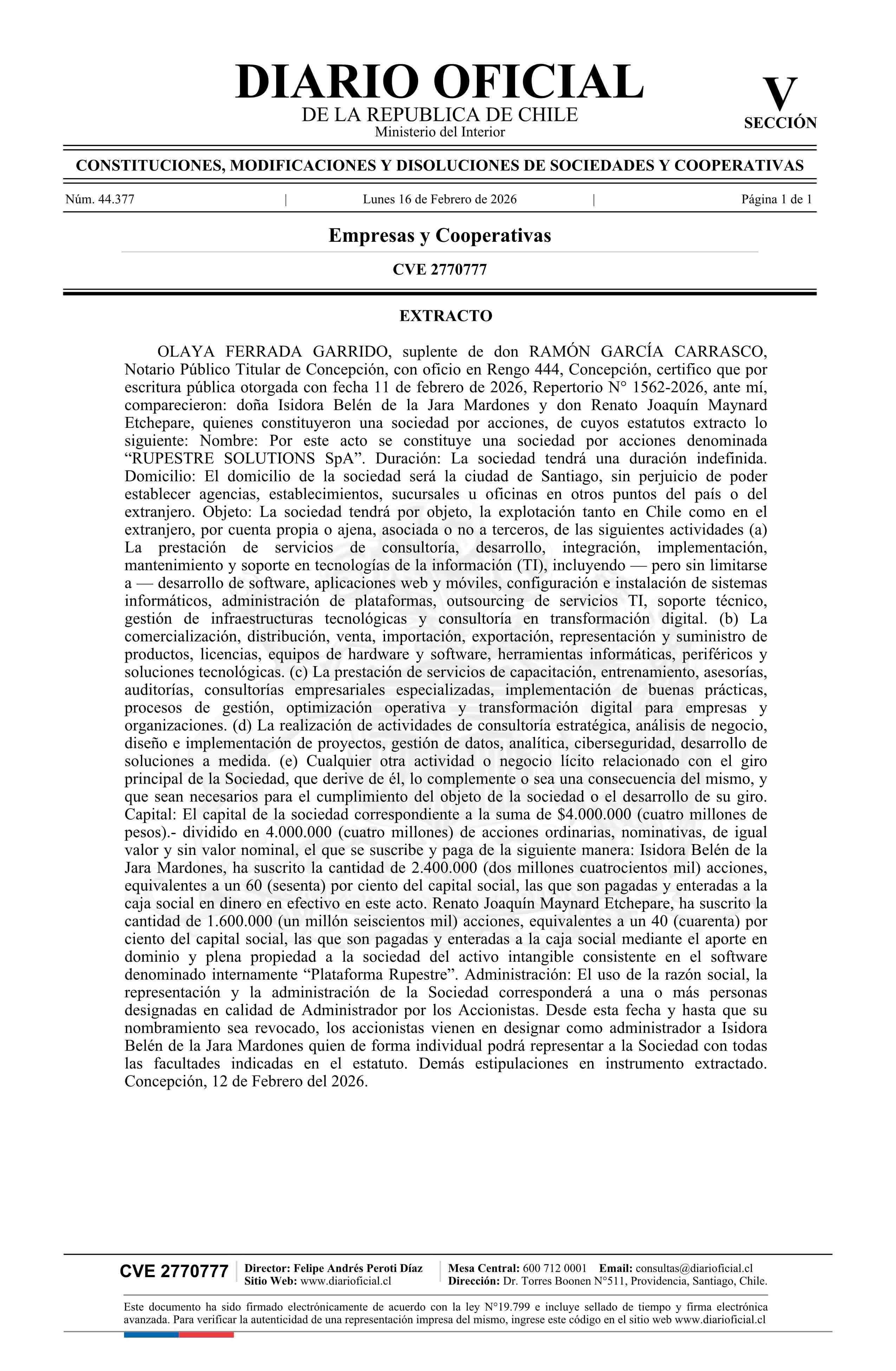 Diario Oficial Edición Electrónica (Diario Oficial de Chile - 5 Empresas Y Cooper)