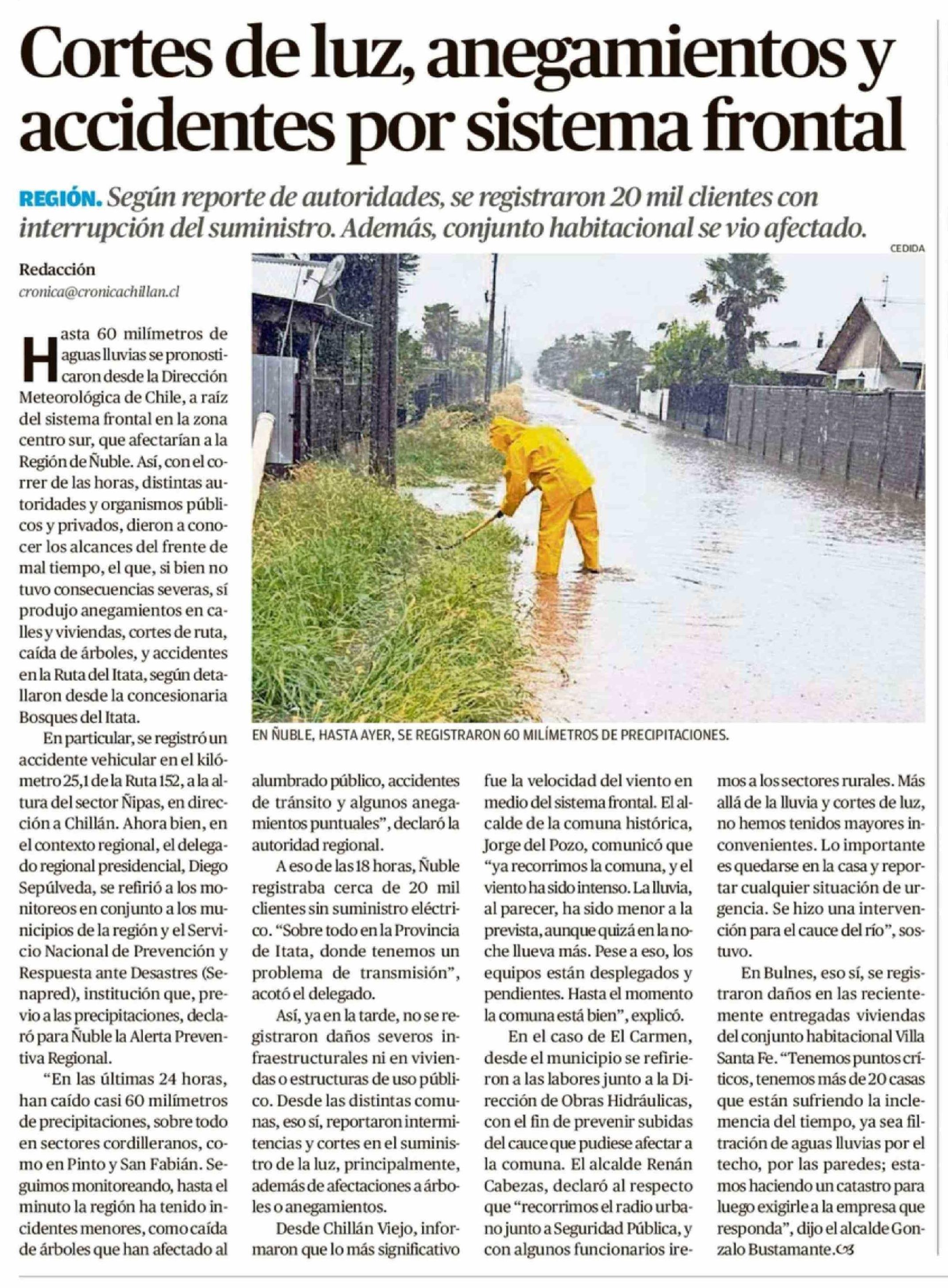 Cortes de luz, anegamientos y accidentes por sistema frontal