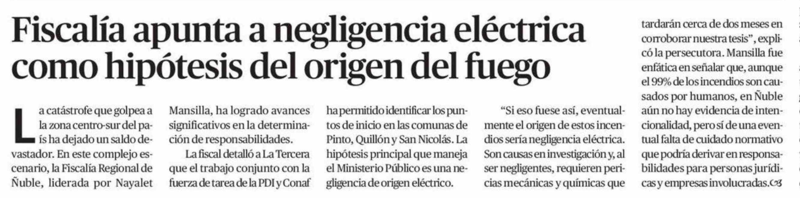 Fiscalía apunta a negligencia eléctrica como hipótesis del origen del fuego