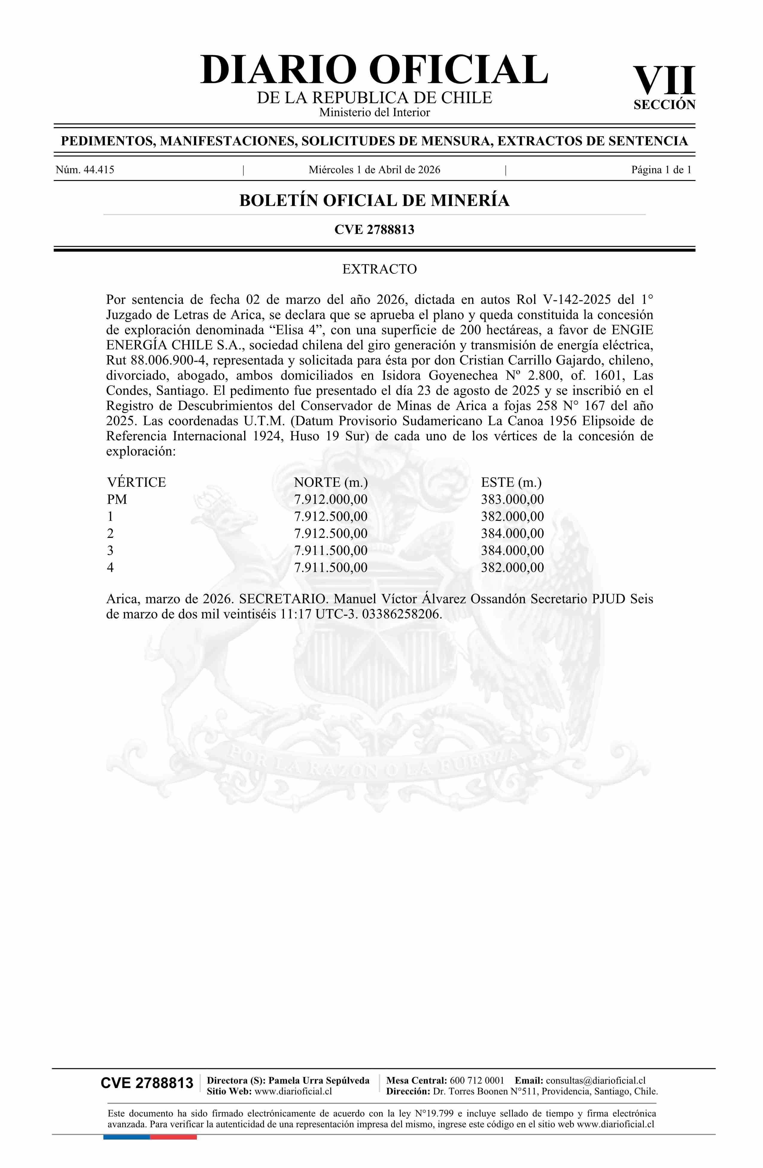 DIARIO OFICIAL CHILE - BOLETÍN OFICIAL DE MINERÍA (DIARIO OFICIAL CHILE – BOM – SENTENCIAS EXPLORA)