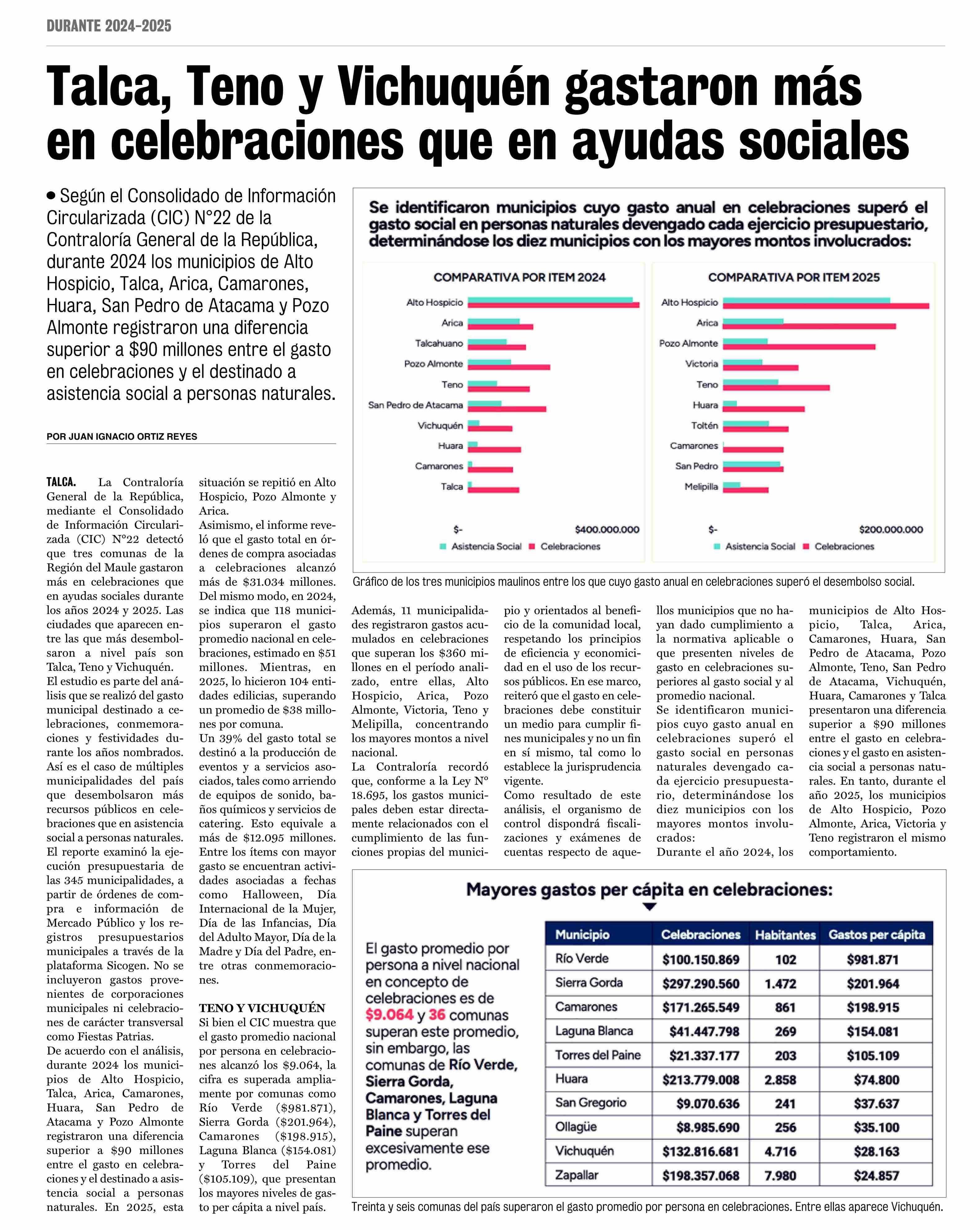 Título: Talca, Teno y Vichuquén gastaron más en celebraciones que en ayudas sociales