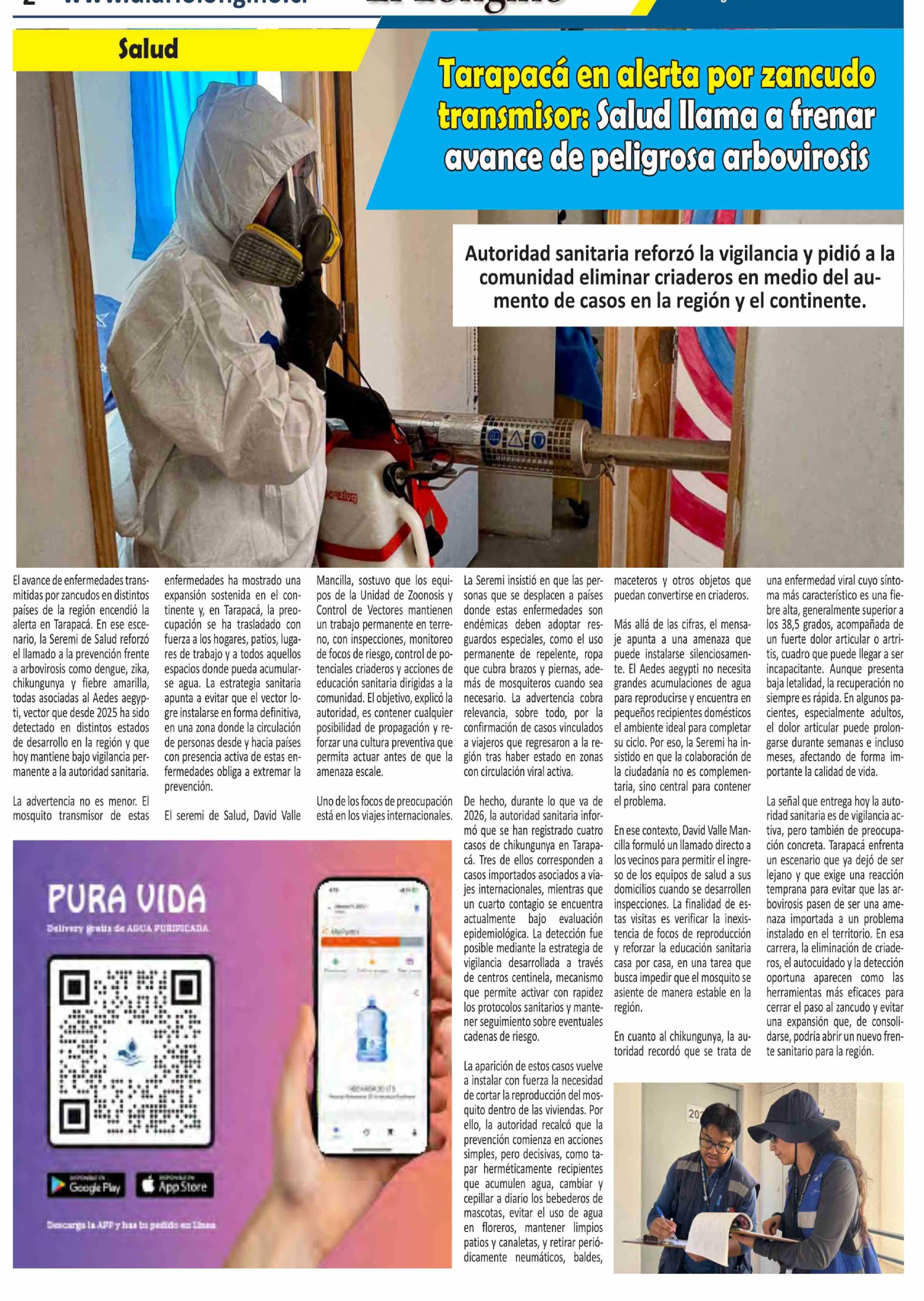 Tarapacá en alerta por zancudo transmisor: Salud llama a frenar avance de peligrosa arbovirosis