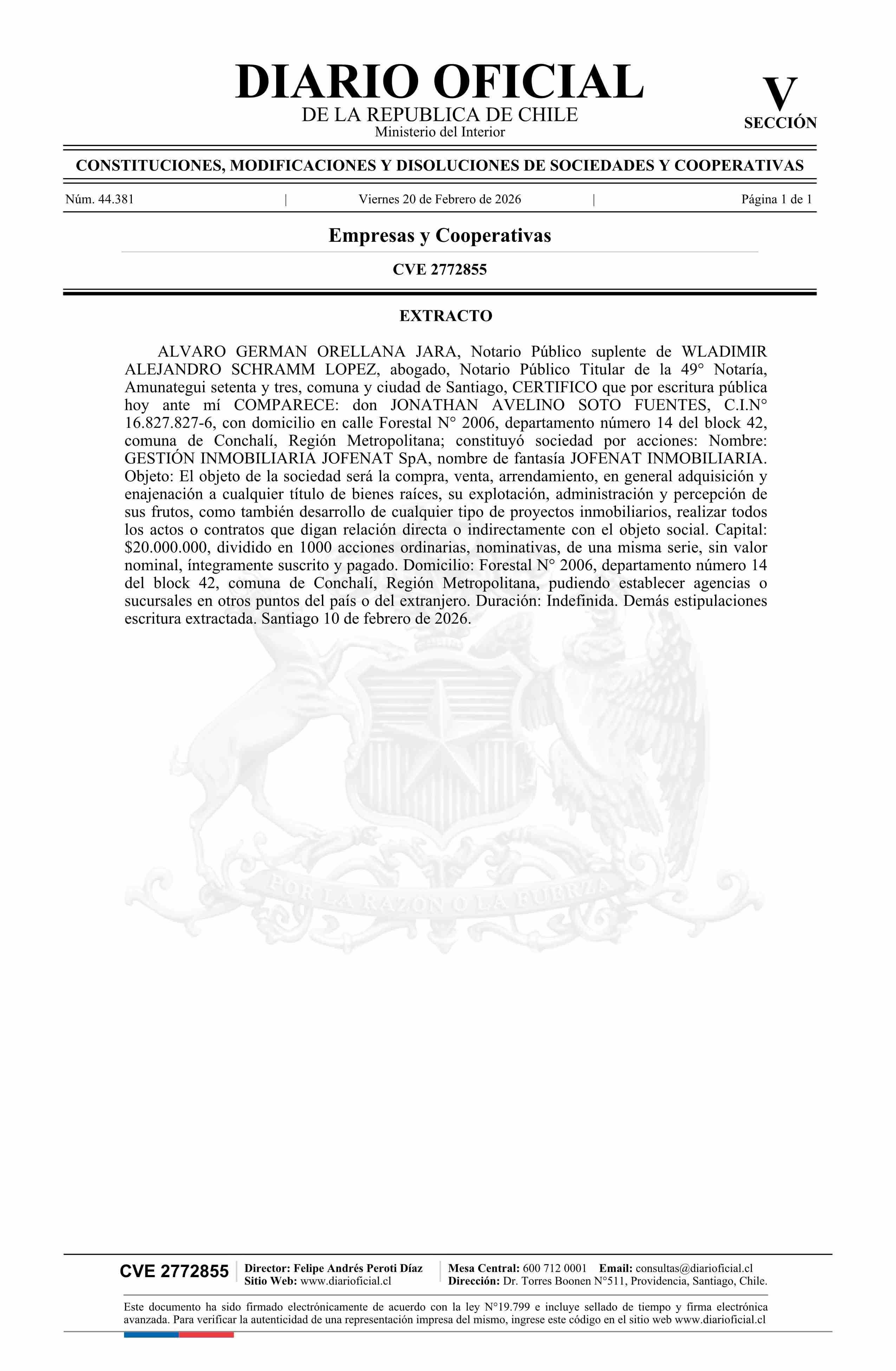GESTIÓN INMOBILIARIA JOFENAT SpA