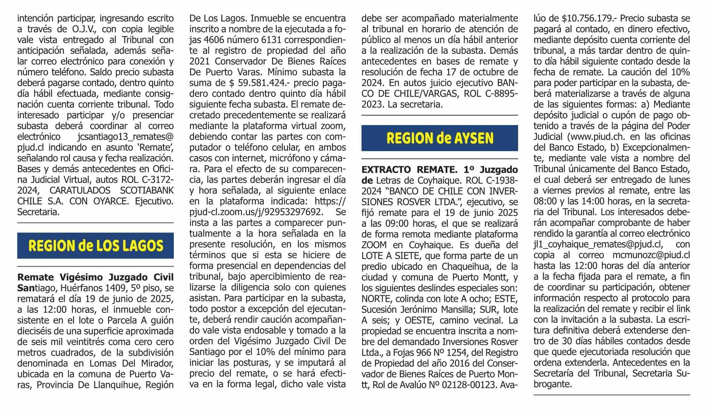 REMATES: REMATES de PROPIEDADES (Ordenados Por Regiones