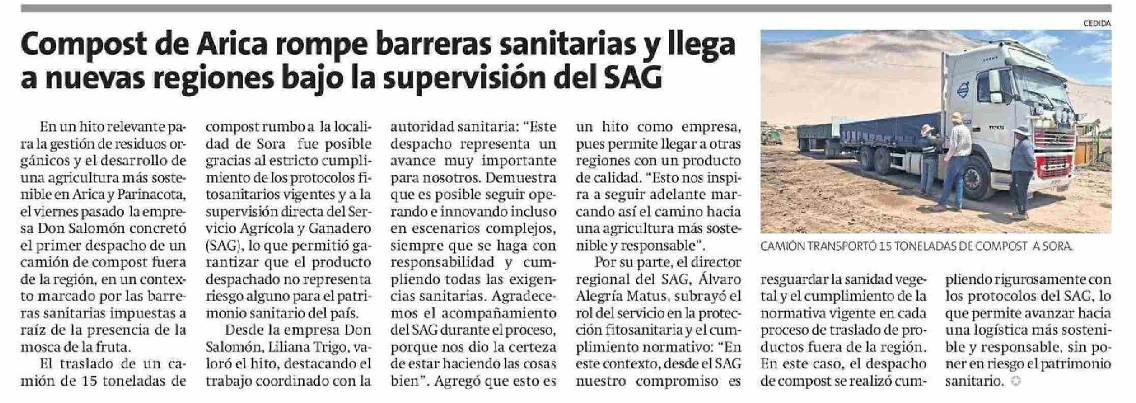 Compost de Arica rompe barreras sanitarias y llega a nuevas regiones bajo la supervisión del SAG