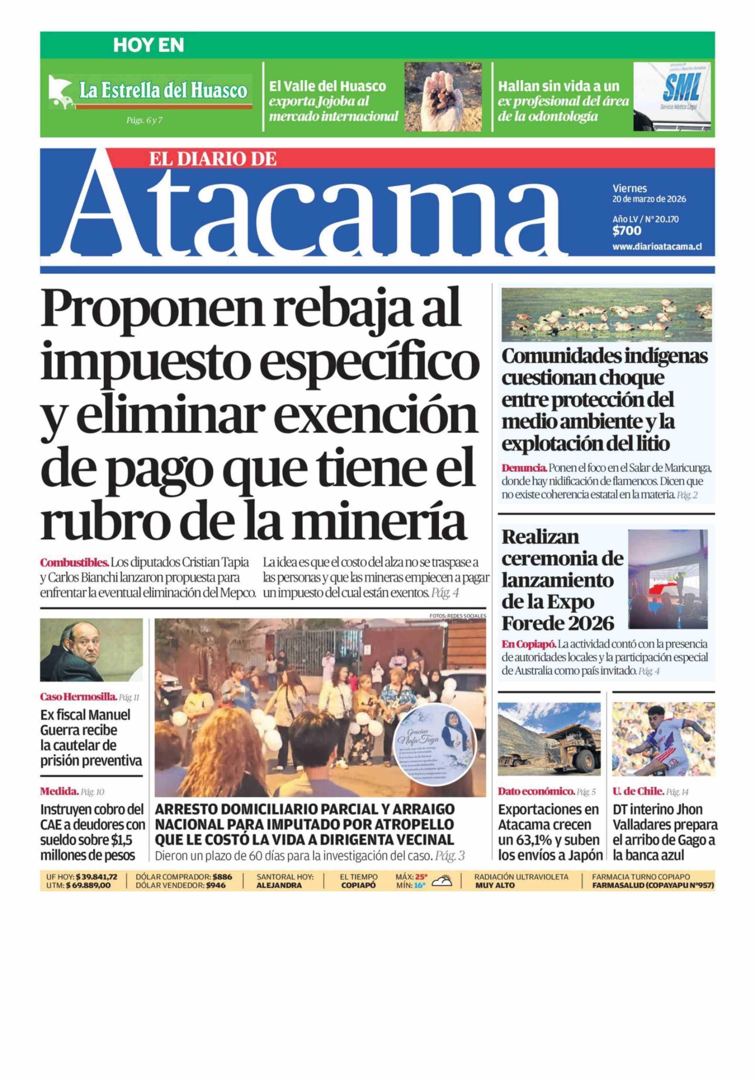 PORTADA EL DIARIO DE ATACAMA CHILE
