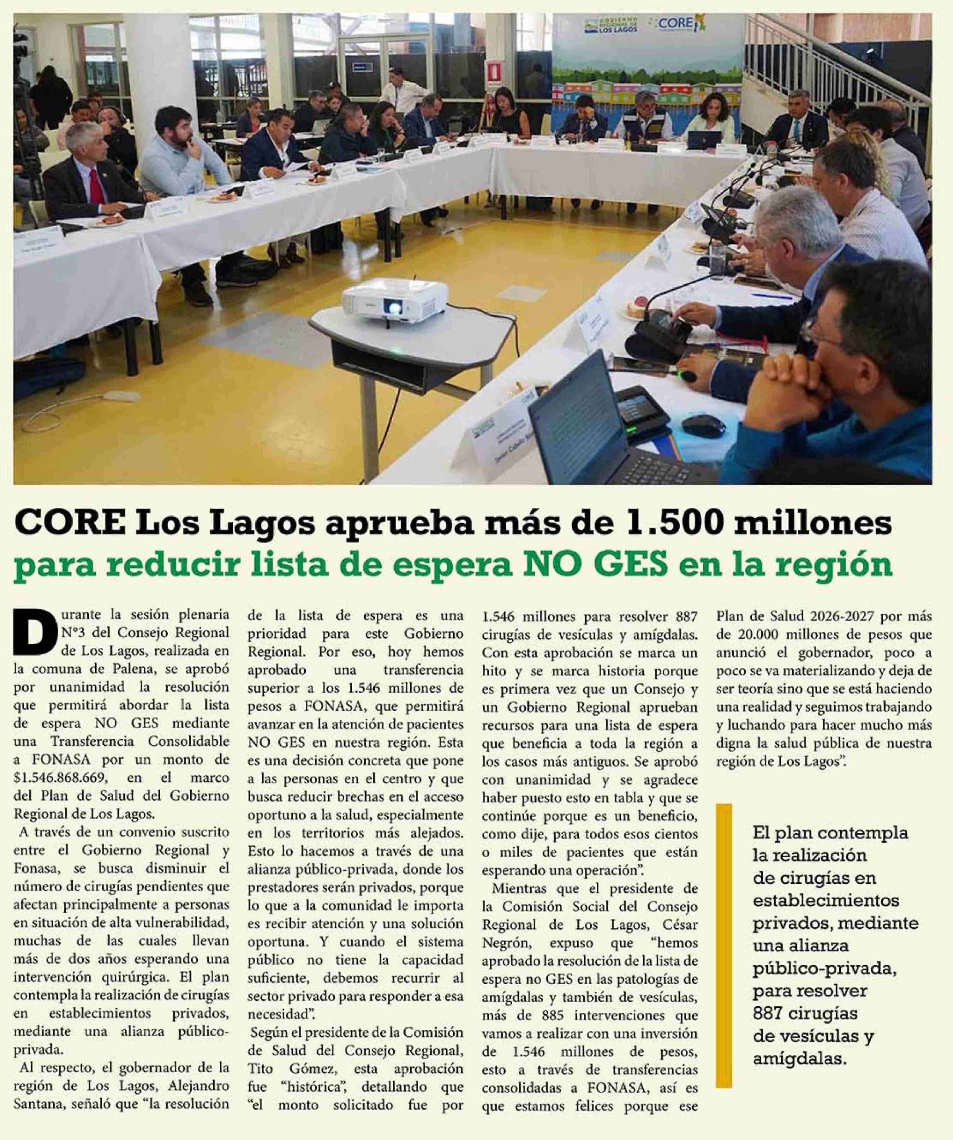 CORE Los Lagos aprueba más de 1.500 millones para reducir lista de espera NO GES en la región
