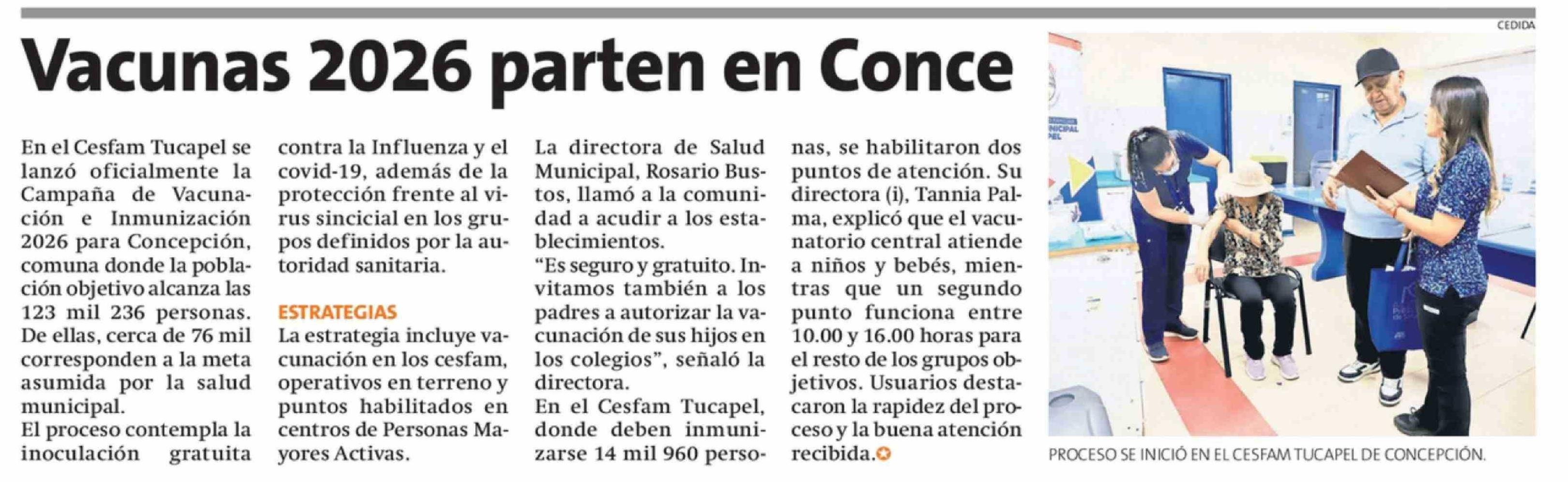 Vacunas 2026 parten en Conce