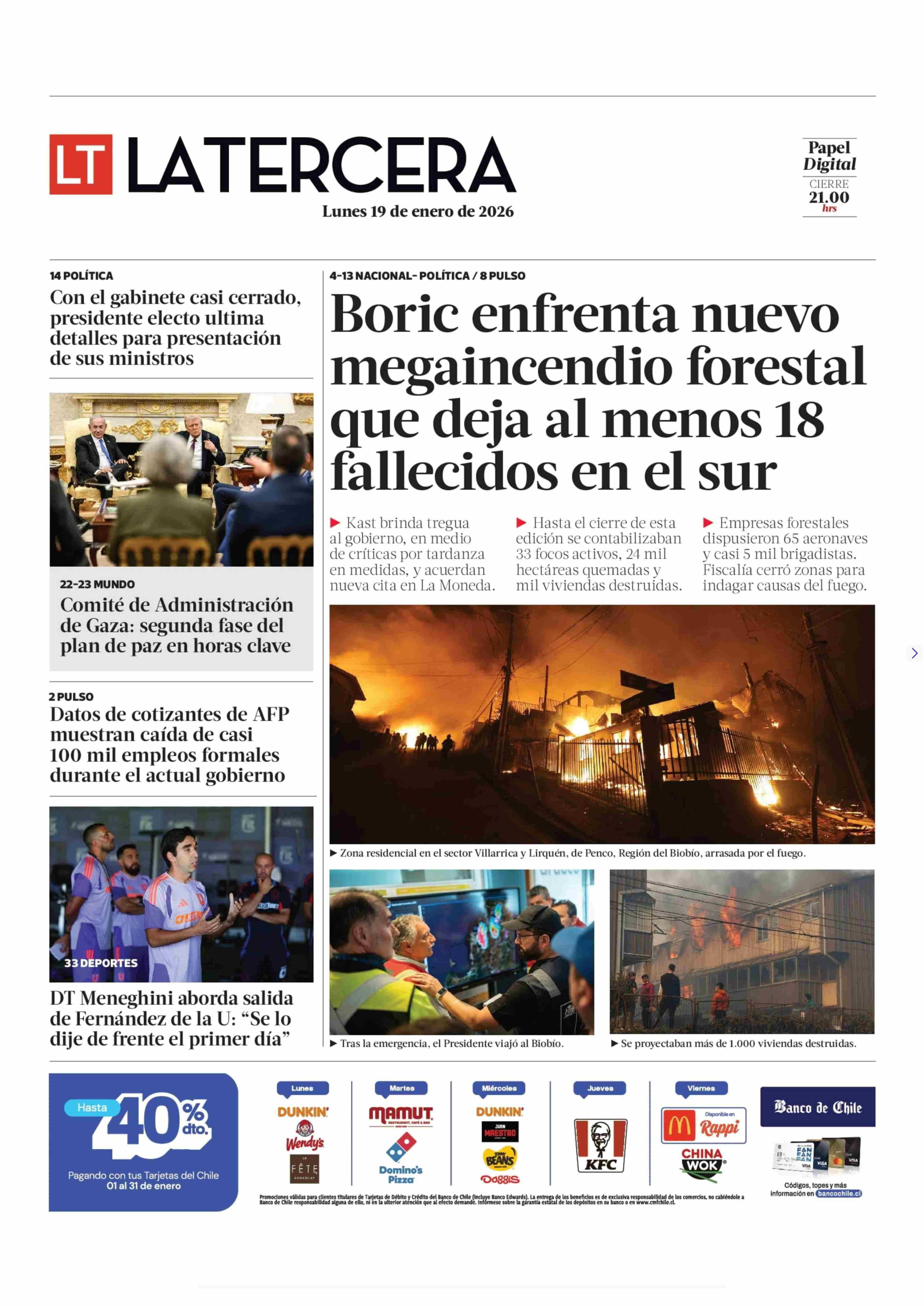PORTADA LA TERCERA CHILE