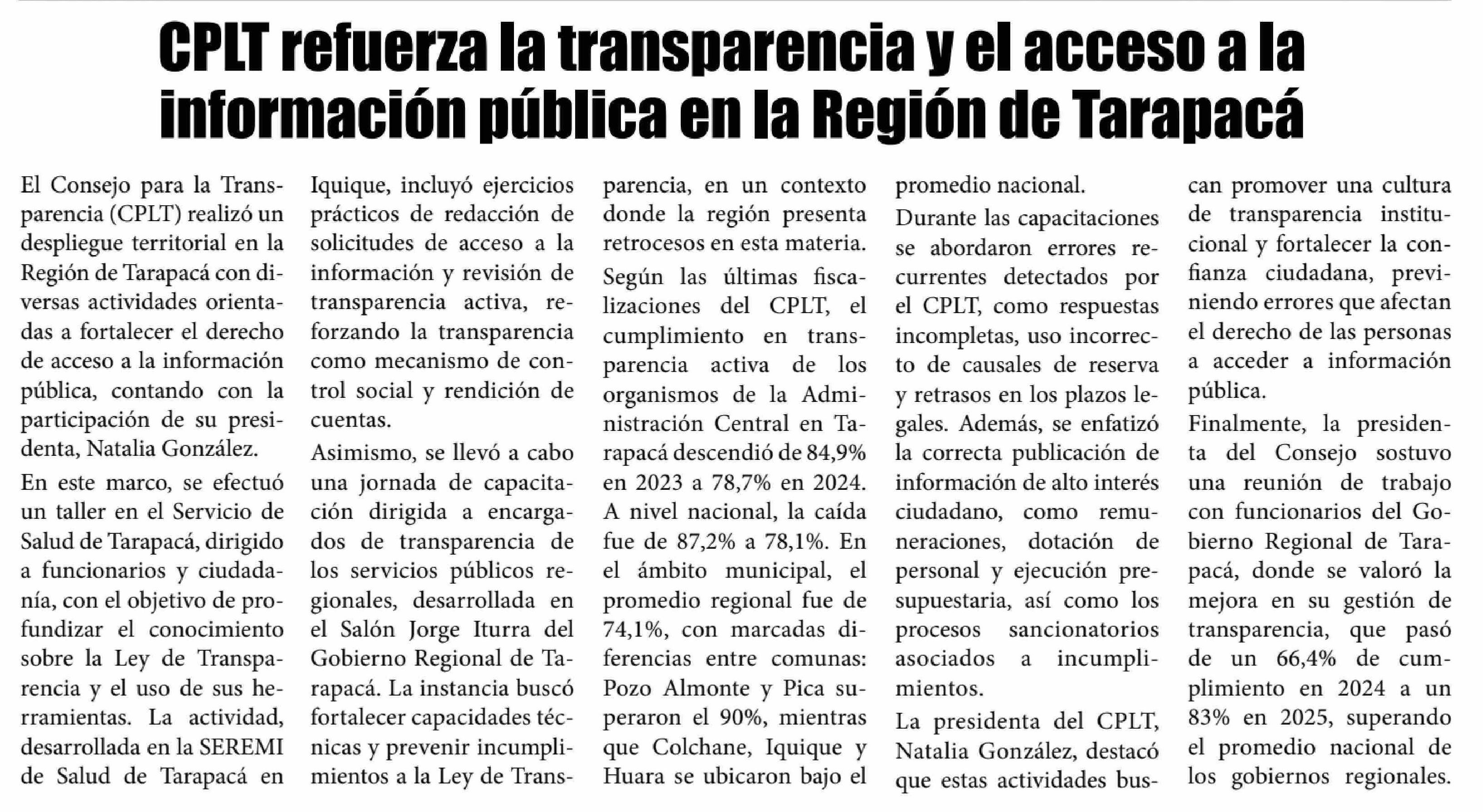 Título: CPLT refuerza la transparencia y el acceso a la información pública en la Región de Tarapacá
