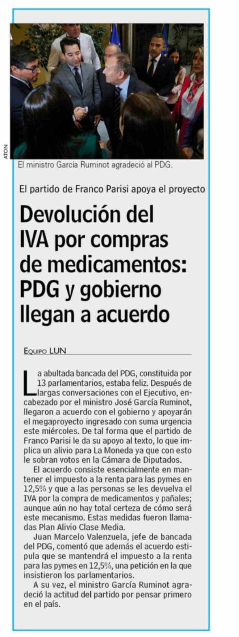 Devolución del IVA por compras de medicamentos: PDG y gobierno llegan a acuerdo