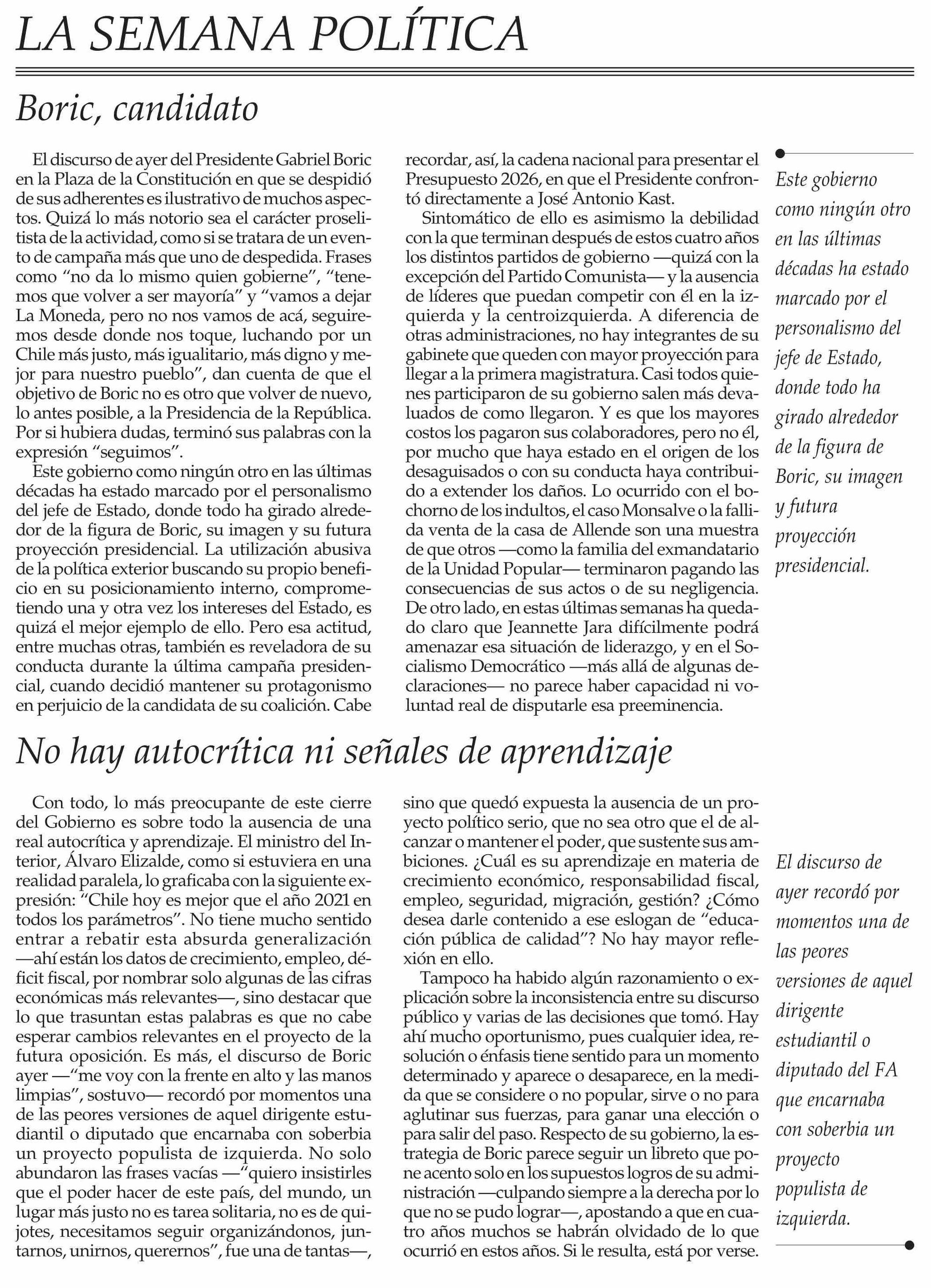 Editorial: LA SEMANA POLÍTICA
