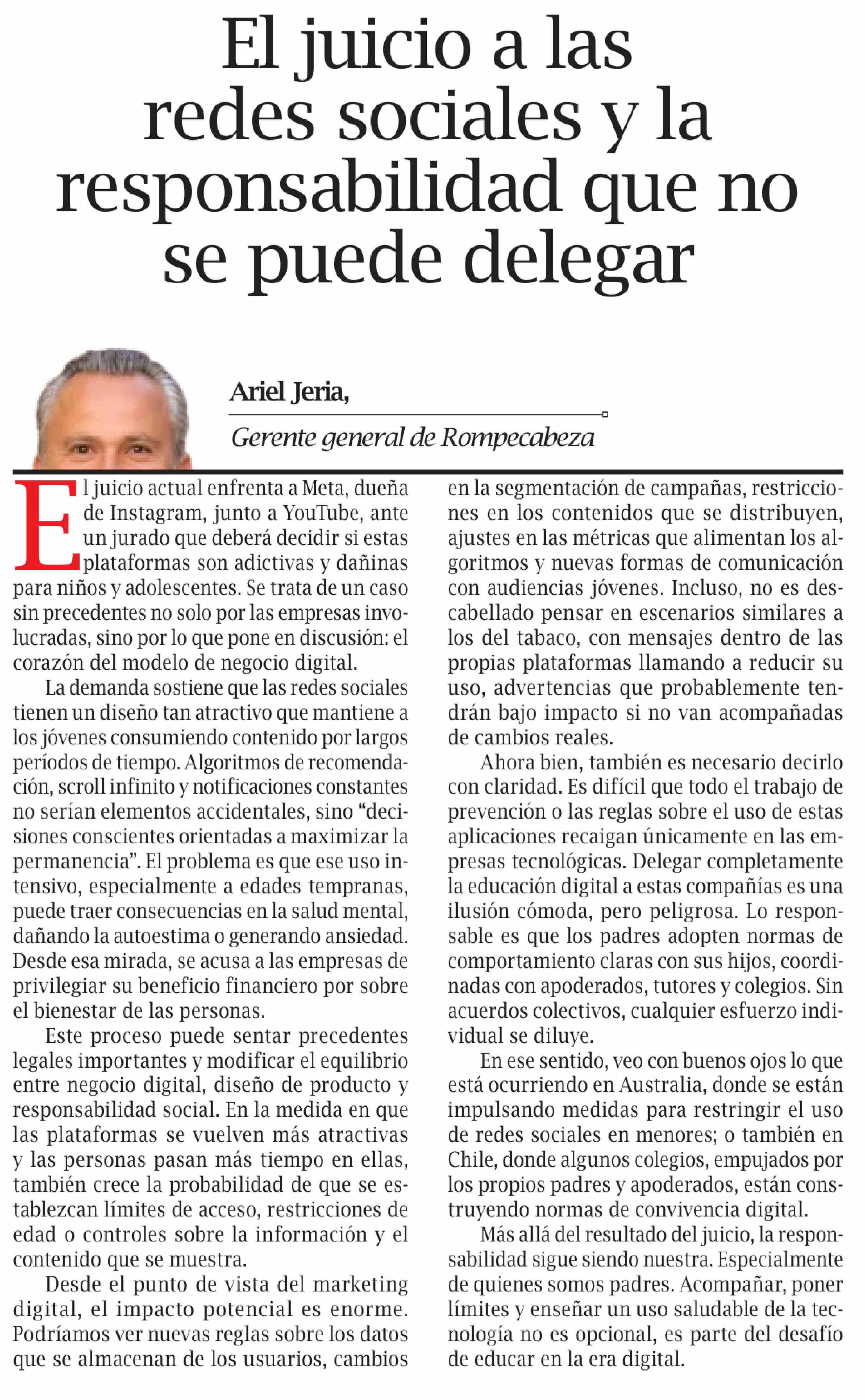 Columnas de Opinión: El juicio a las redes sociales y la responsabilidad que no se puede delegar
