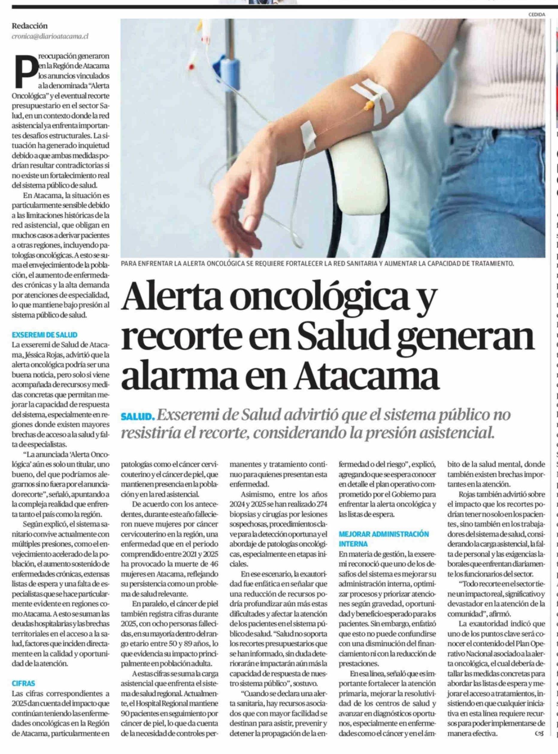 Título: Alerta oncológica y recorte en Salud generan alarma en Atacama