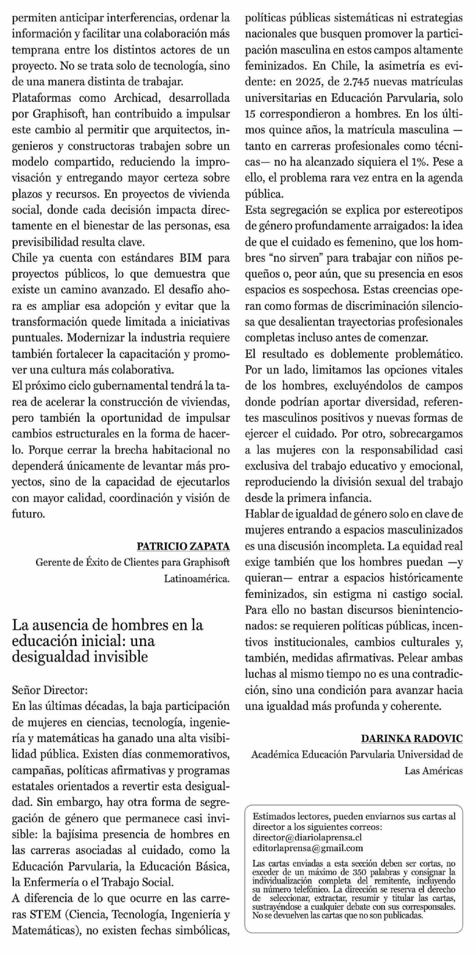Cartas: La ausencia de hombres en la educación inicial: una desigualdad invisible
