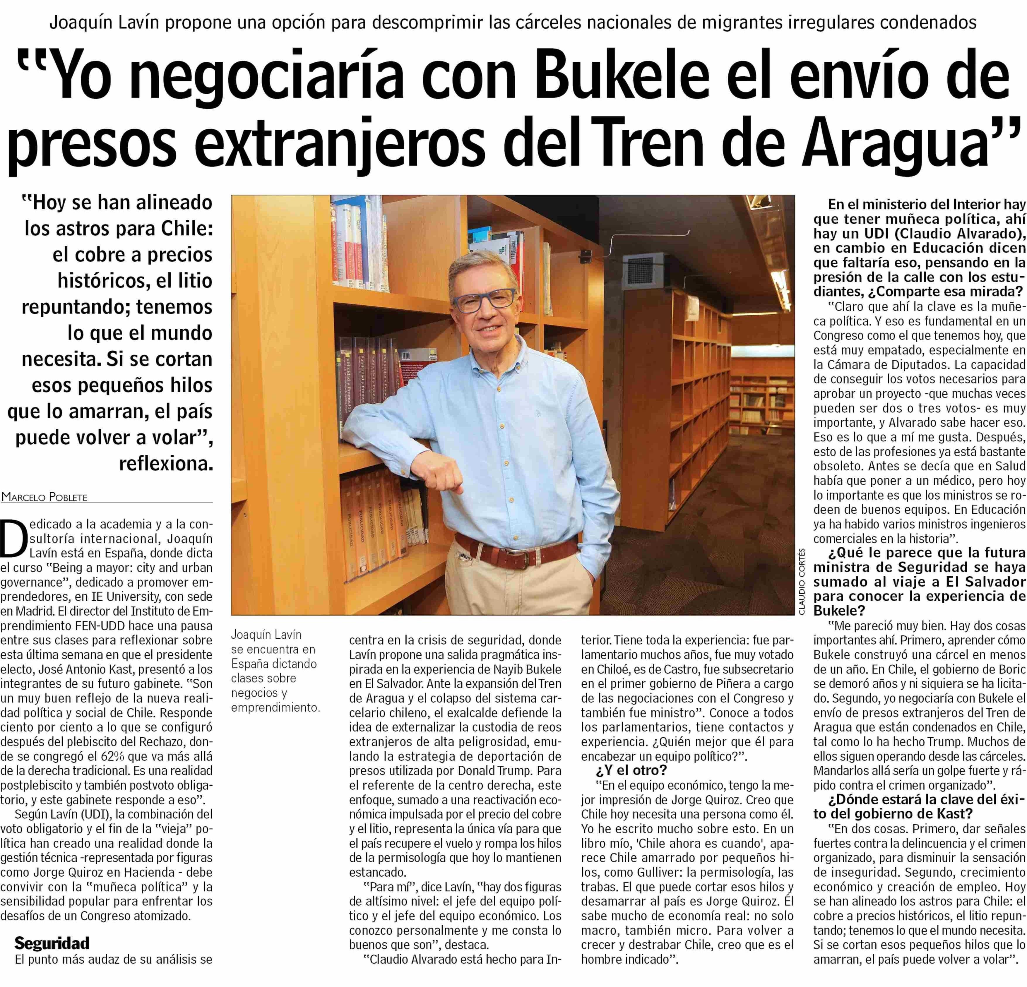 "Yo negociaría con Bukele el envío de presos extranjeros del Tren de Aragua"
