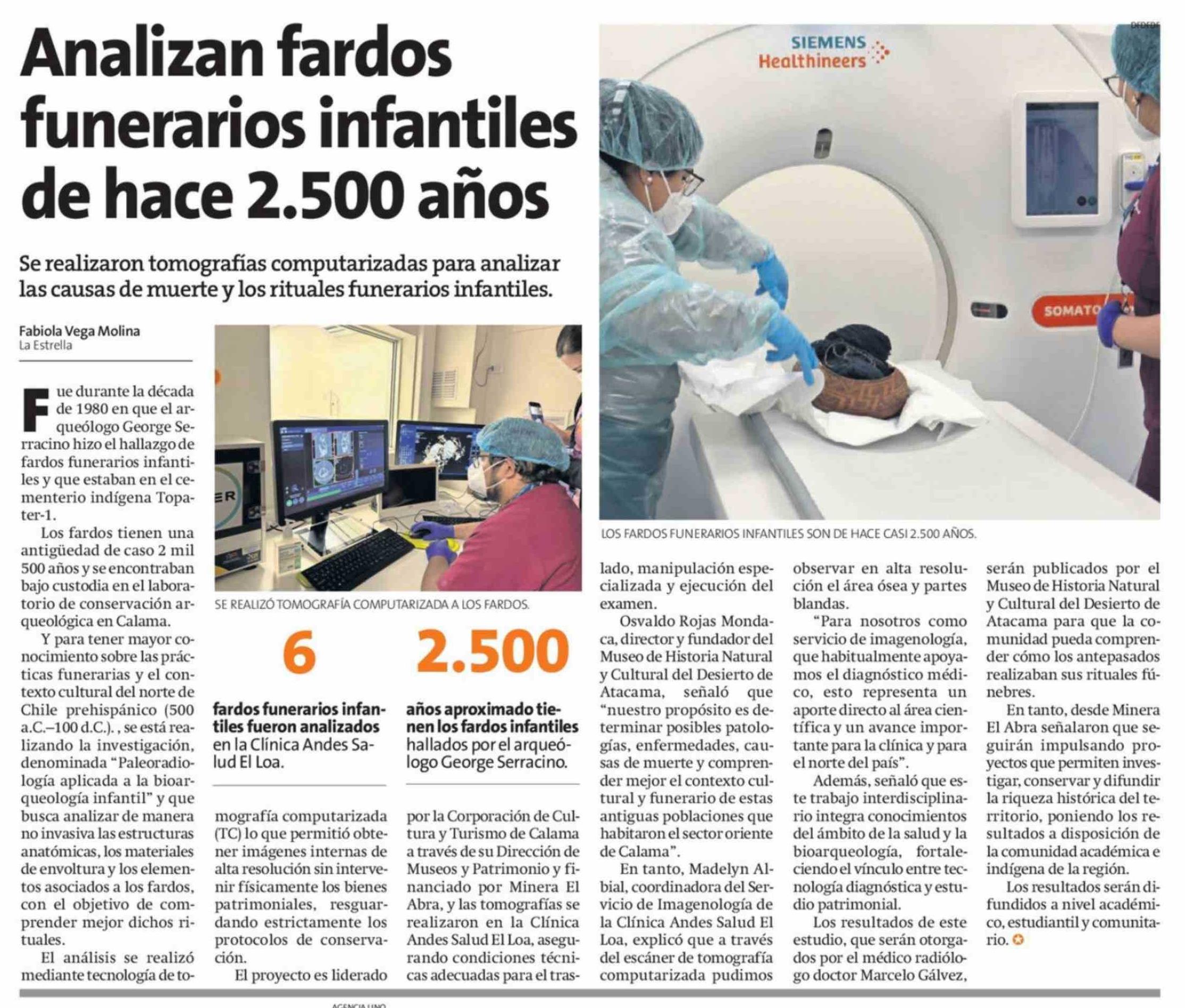Analizan fardos funerarios infantiles de hace 2.500 años